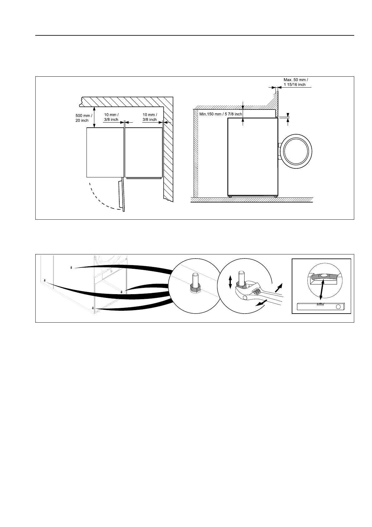 Level the machine with the feet of the machine. The maximum height adjustment of the feet is 15 mm / 9/16 inch.