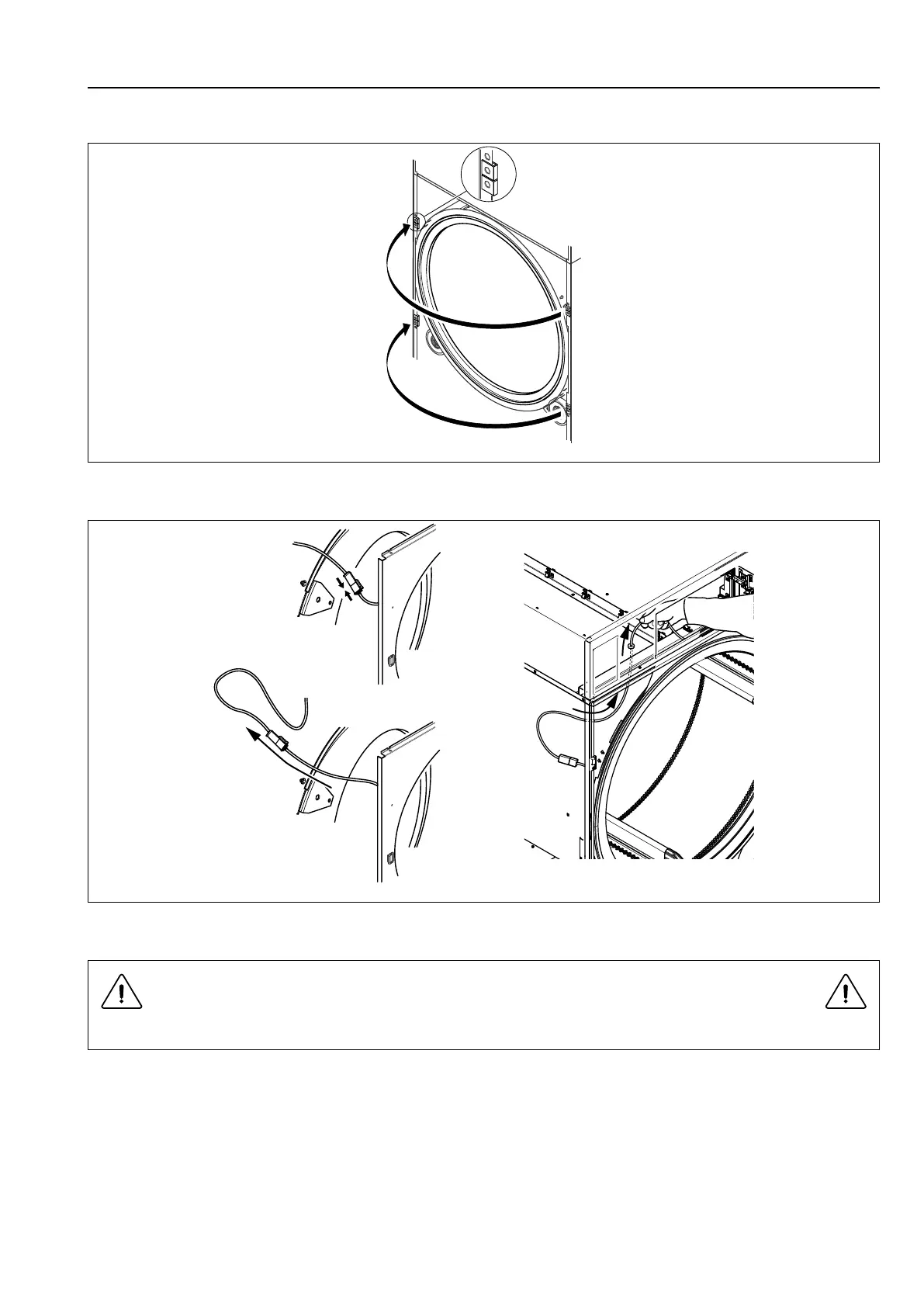 Connect the door switch cable and push the cable in over the drum and pull it upwards.