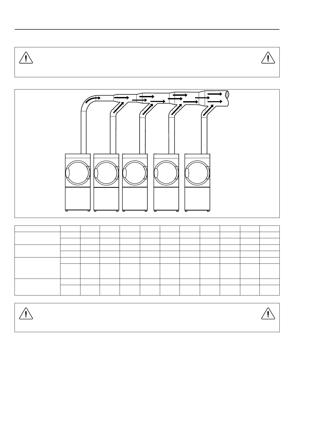 When several machines shall use the same exhaust duct the exhaust duct must increase after each machine.