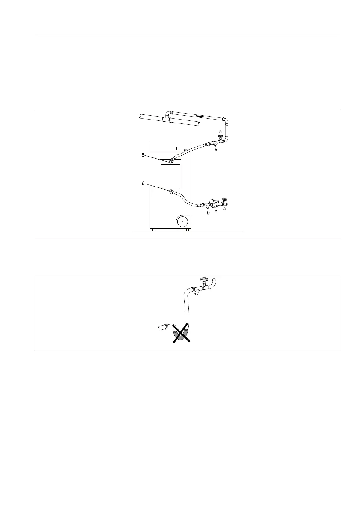 • Mount a plug valve (a) and a dirt collector (c) in the branch pipe.