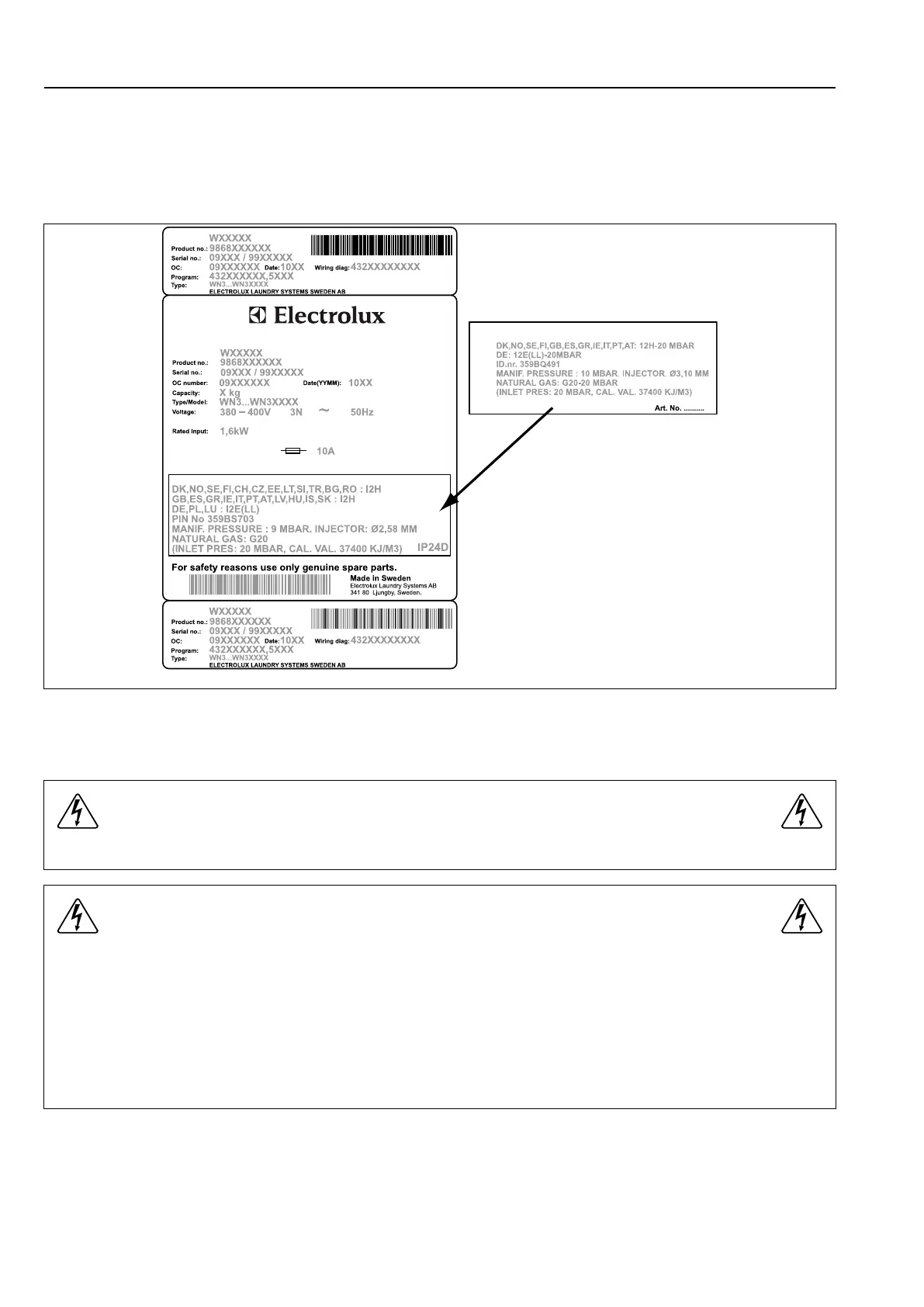 When the machine is to be converted to another gas type, the data label at the rear of the machine must be updated
