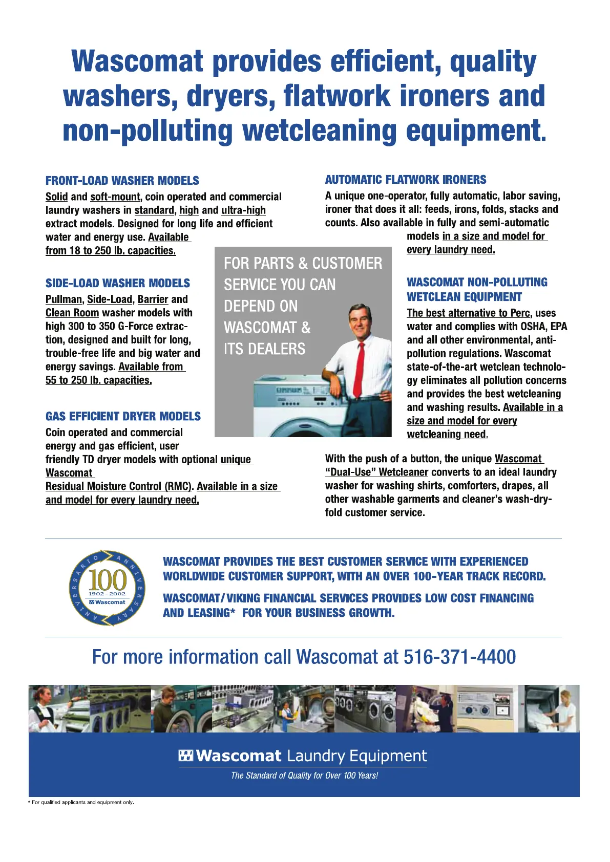 For more information call Wascomat at 516-371-4400