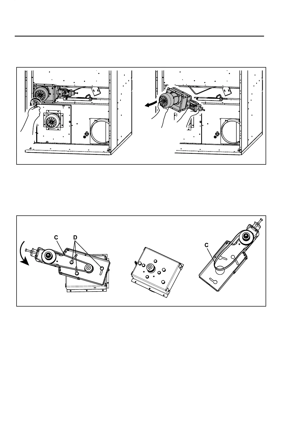 Loosenthebelt(C)fromthe“motorarm”.