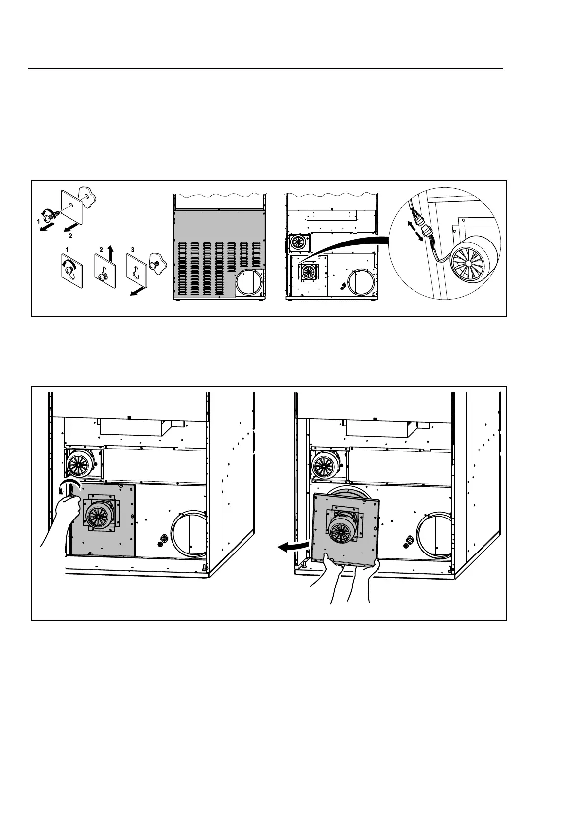 Demountthefanmotormodule.Carefullyliftoutthefanmotormoduleandputitdownwiththe