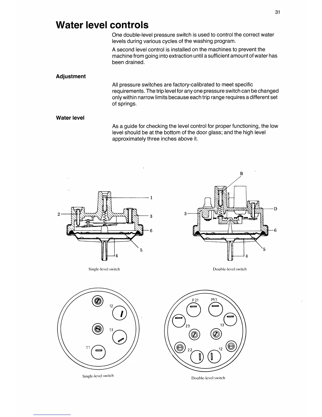 Wascomat W 124 - Water Level Control; Level Control Adjustment; Water Level Checking Guide