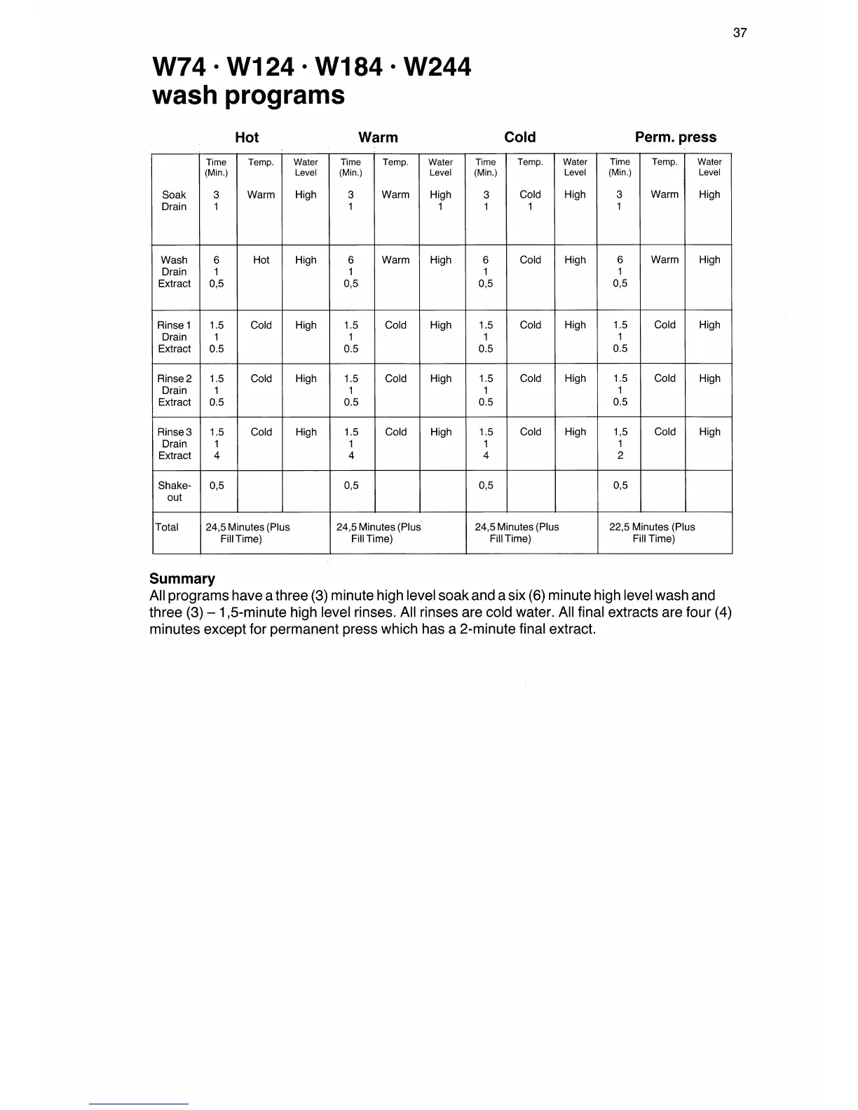 Wascomat W 124 - Wash Programs