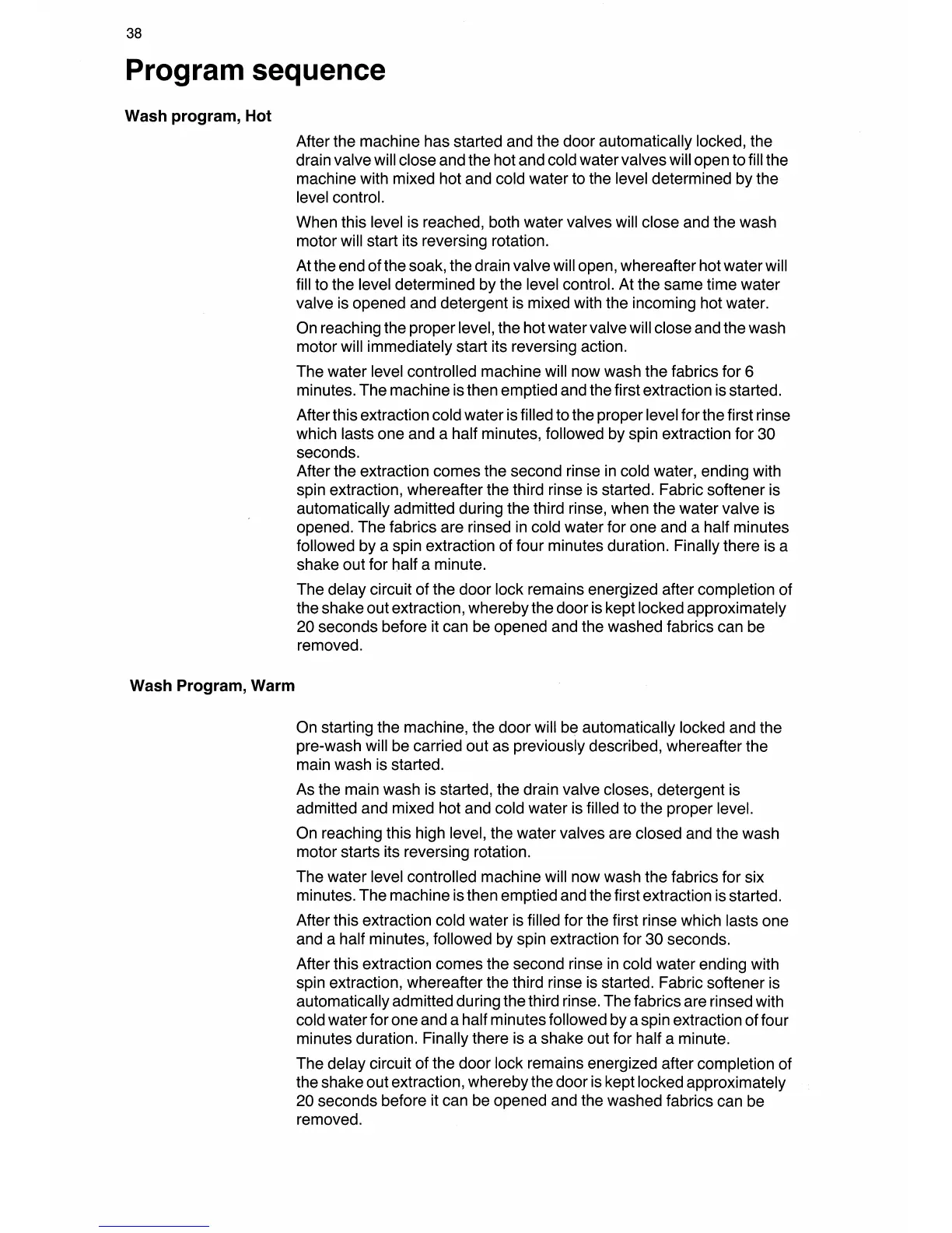 Wascomat W 124 - Program Sequence Details; Hot Wash Program; Warm Wash Program