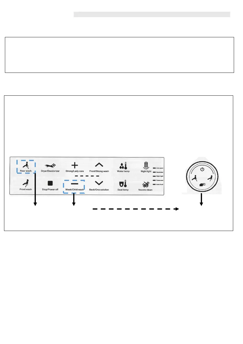 2. Press the ‘Weak’ and ‘Rear Wash’ button at the same time and hold until the remote control