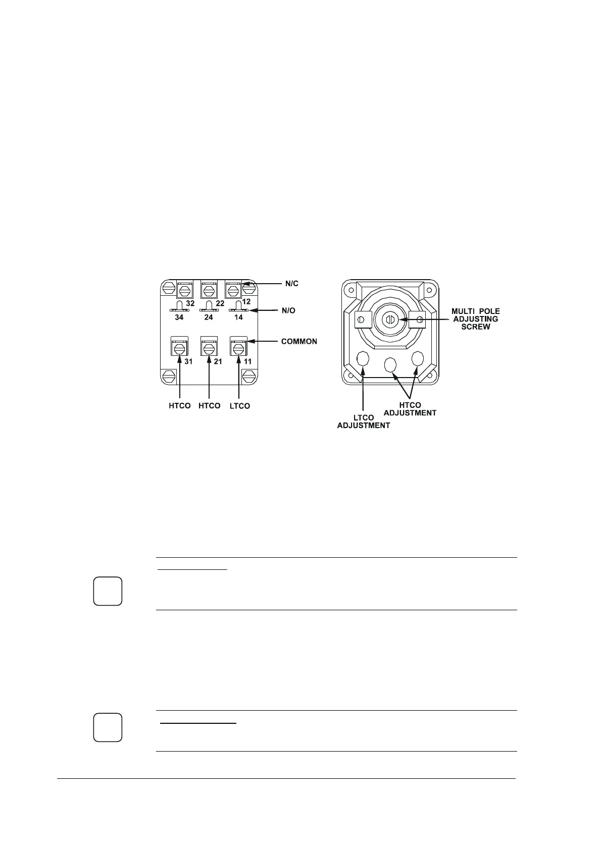 wired before making adjustments). Clockwise rotation of the screws increases the setting,