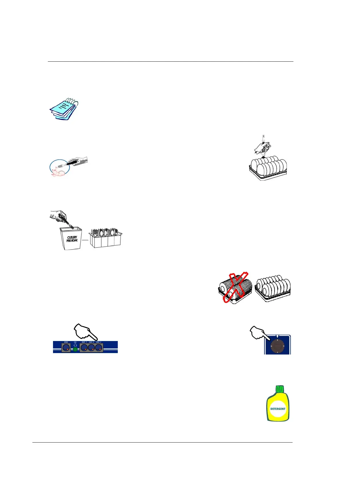 use of cutlery pre soak solution, detergent and drying agent.