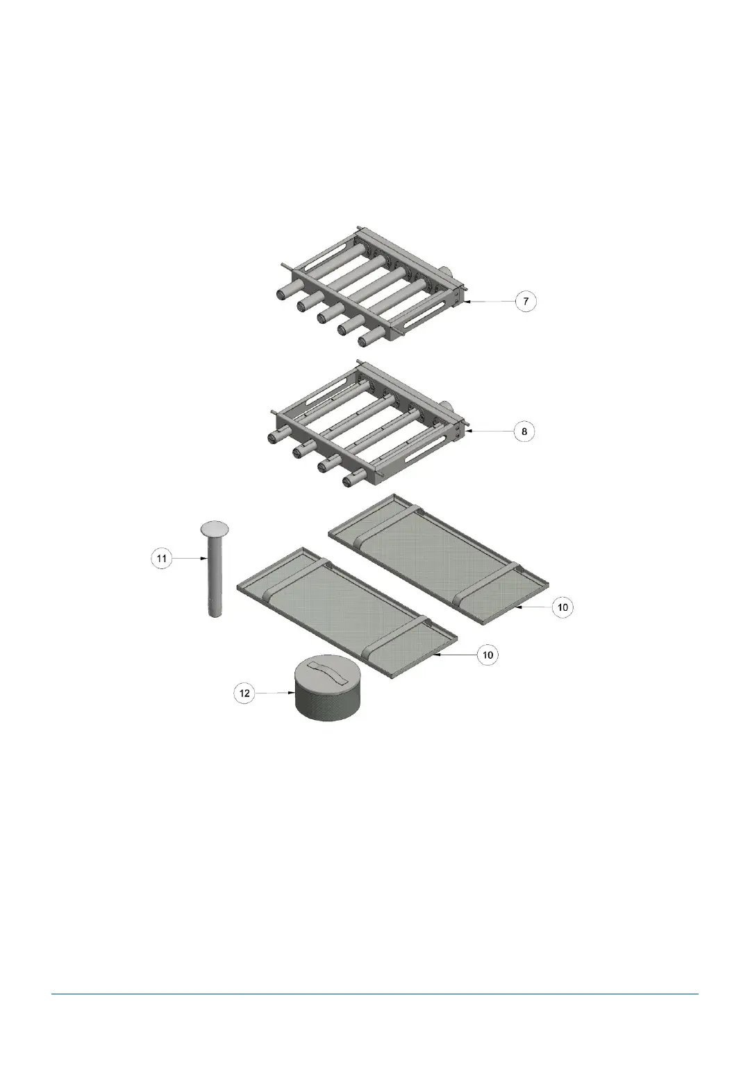 • Remove Scrap Trays (10) and clean with a brush and water to clear grid.