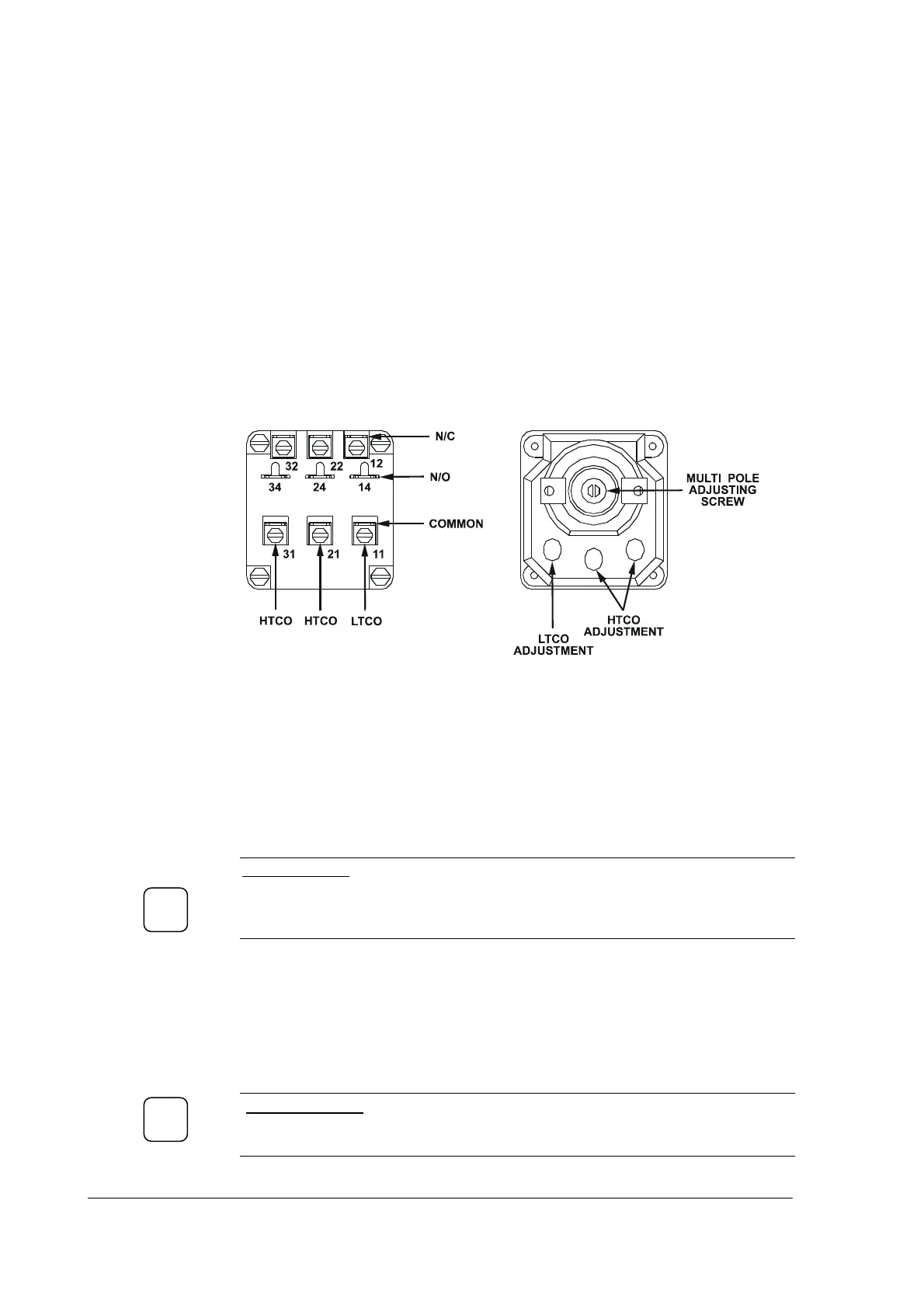 wired before making adjustments). Clockwise rotation of the screws increases the setting,