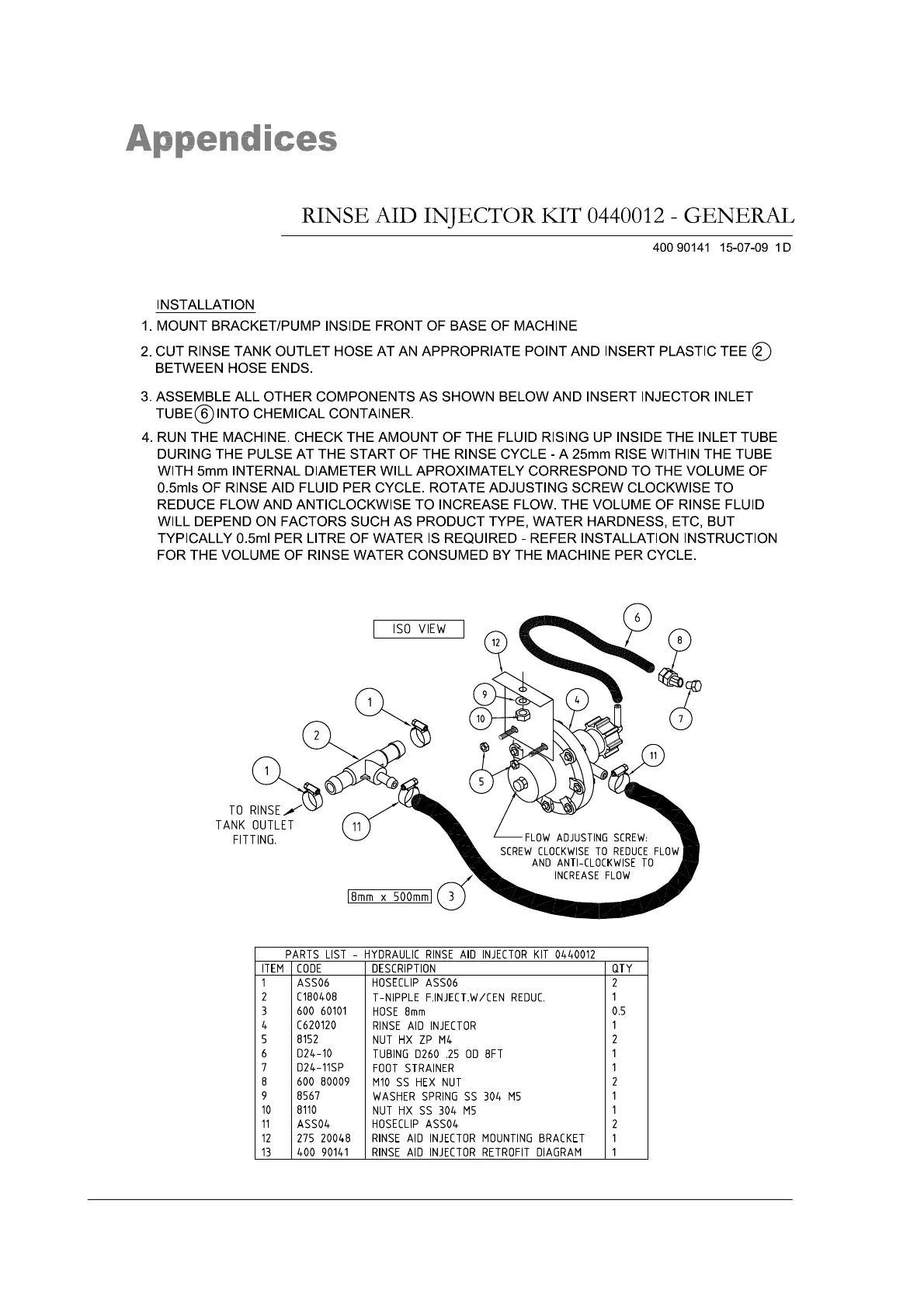Washtech PW2 - Appendices; Rinse Aid Injector Kit