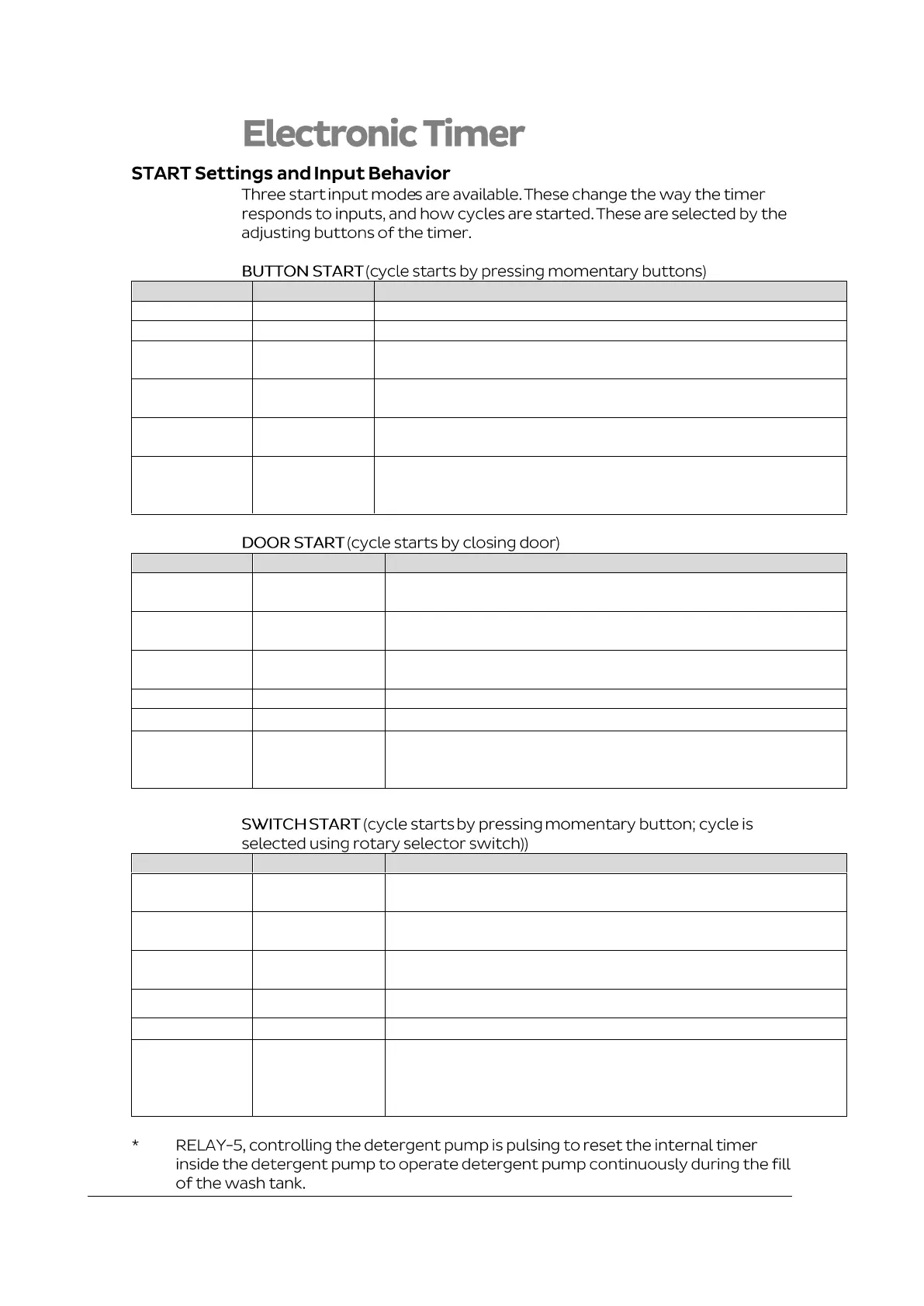 While input is off, RELAY-5 (detergent pump) pulses 10 secs on / 1 sec
