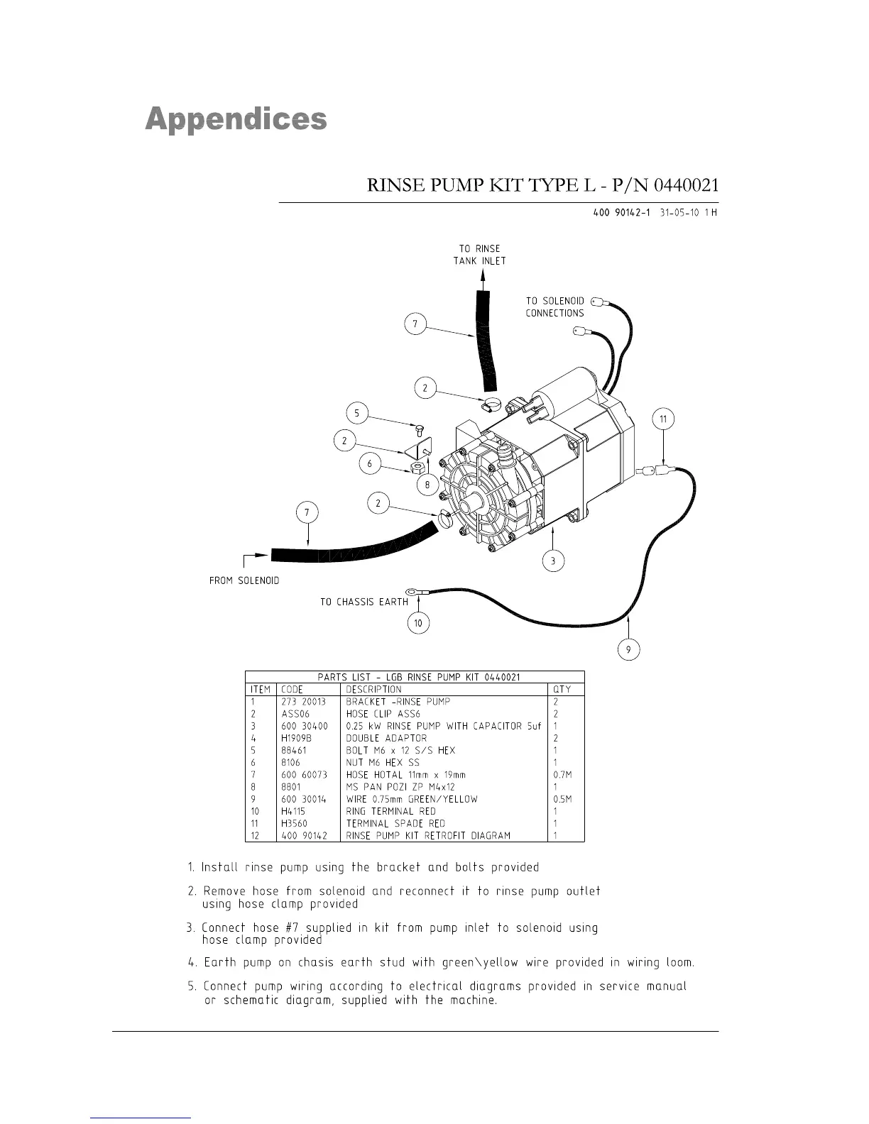 Washtech XP - Appendices; Rinse Pump Retrofit