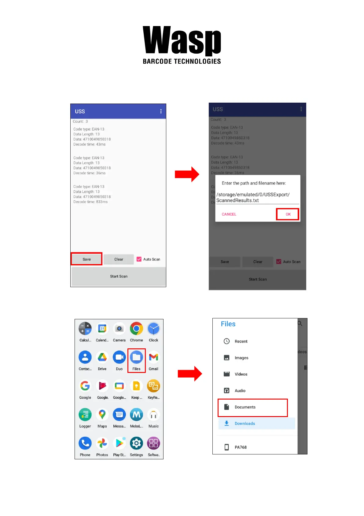 3. To save settings, you can also tap Save on the screen and input path then