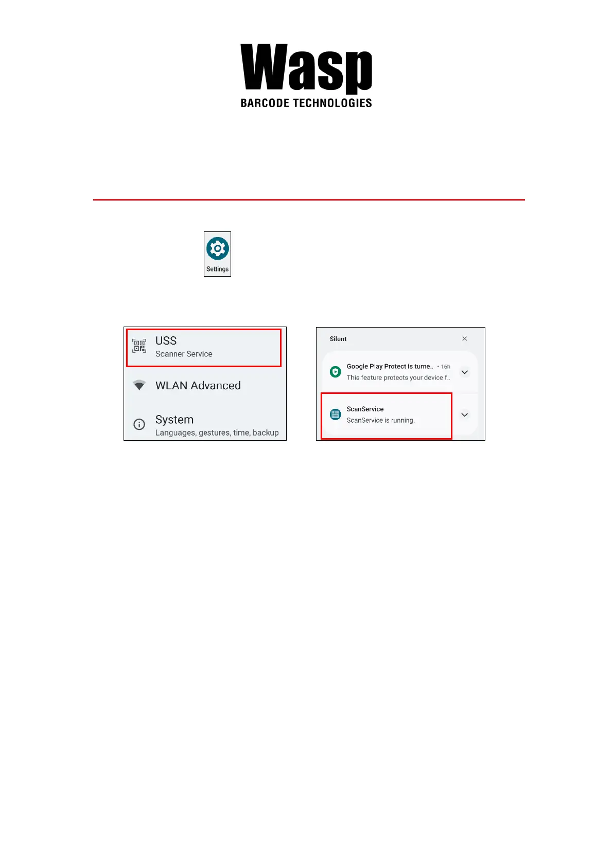 APPS, and tap Settings and then tap USS ( Wasp scan service ).