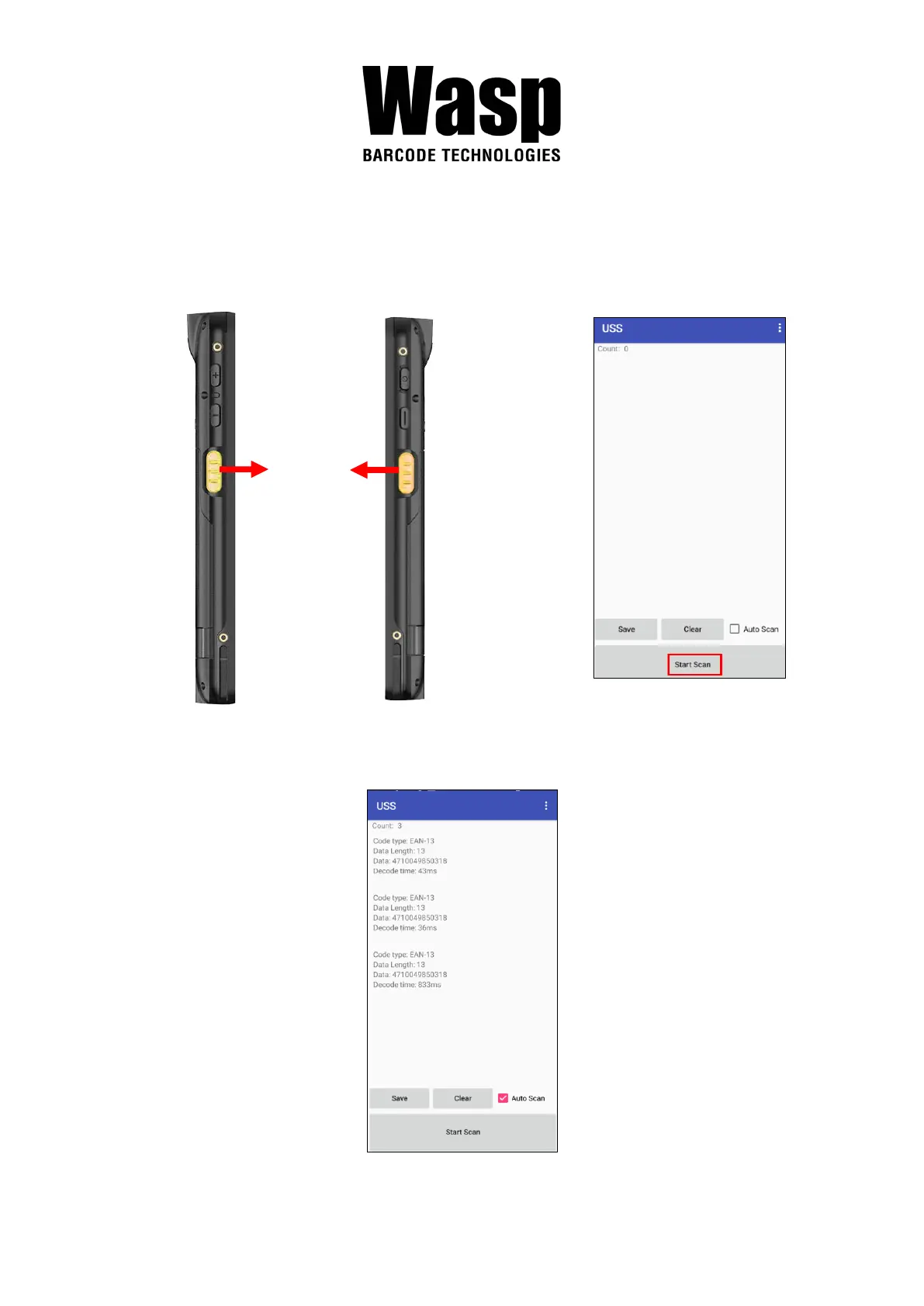 1. Aim the Barcode Scan Engine to the barcode and press one of two scan