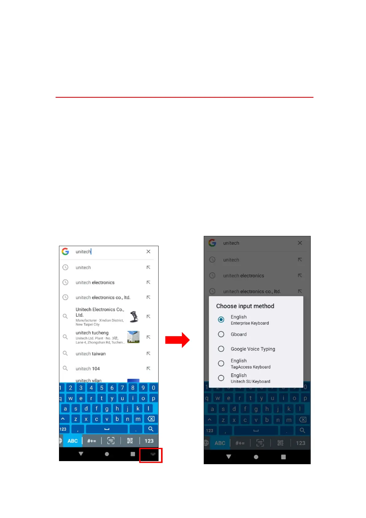 the bottom right to select different input method.