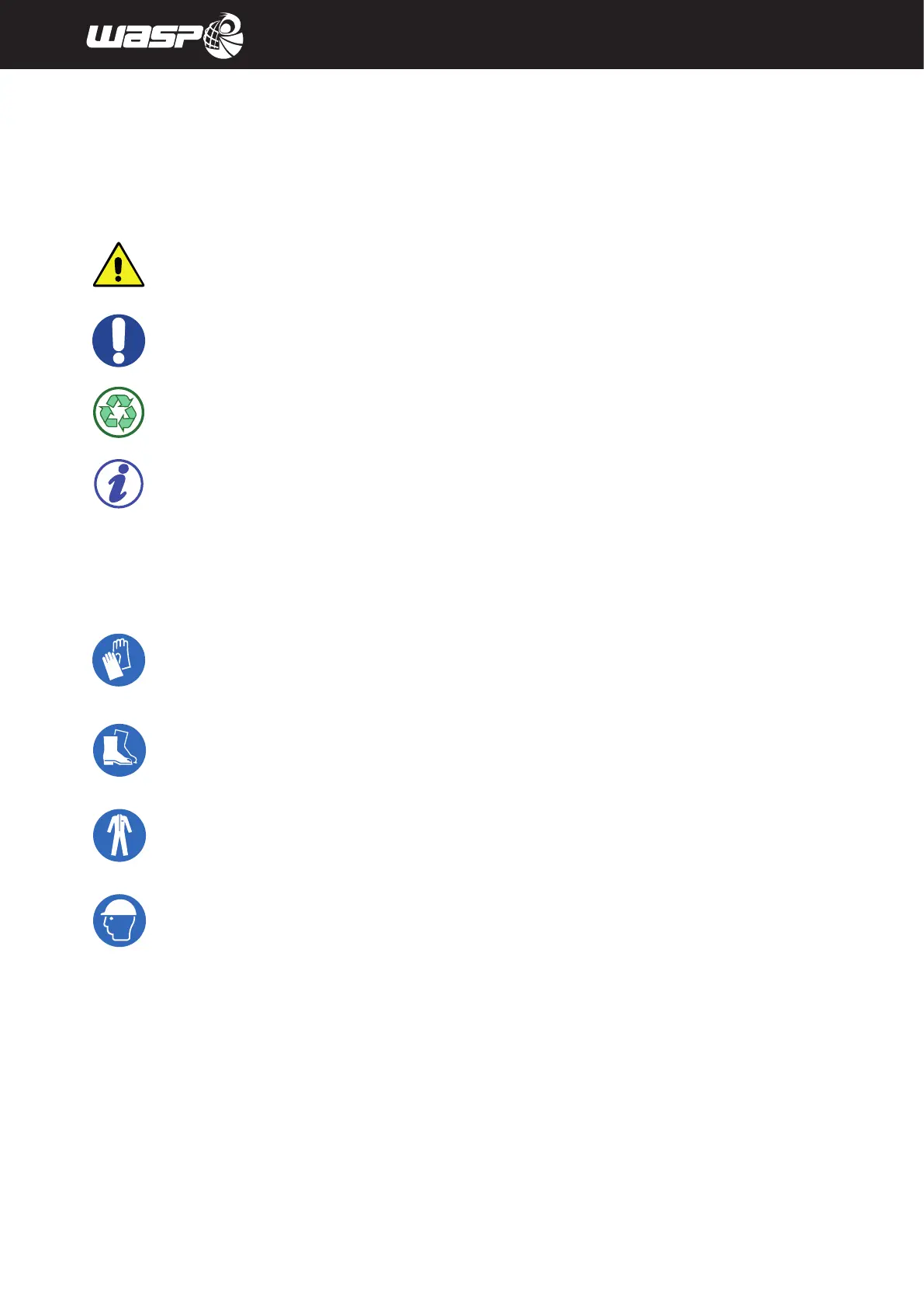 The graphic symbols used in this manual are indicated below to indicate the need to wear certain PPE.