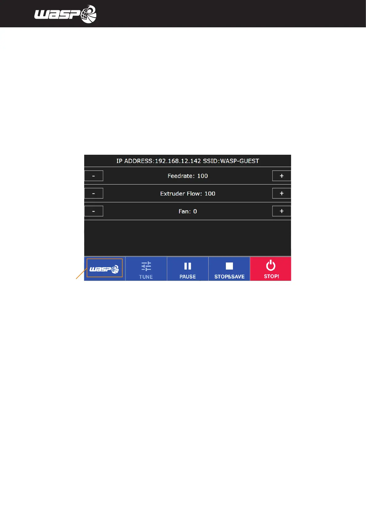 2. Feedrate: defines the speed of the process (standard is 100%, to tune it use + and - button and wait 3 seconds)