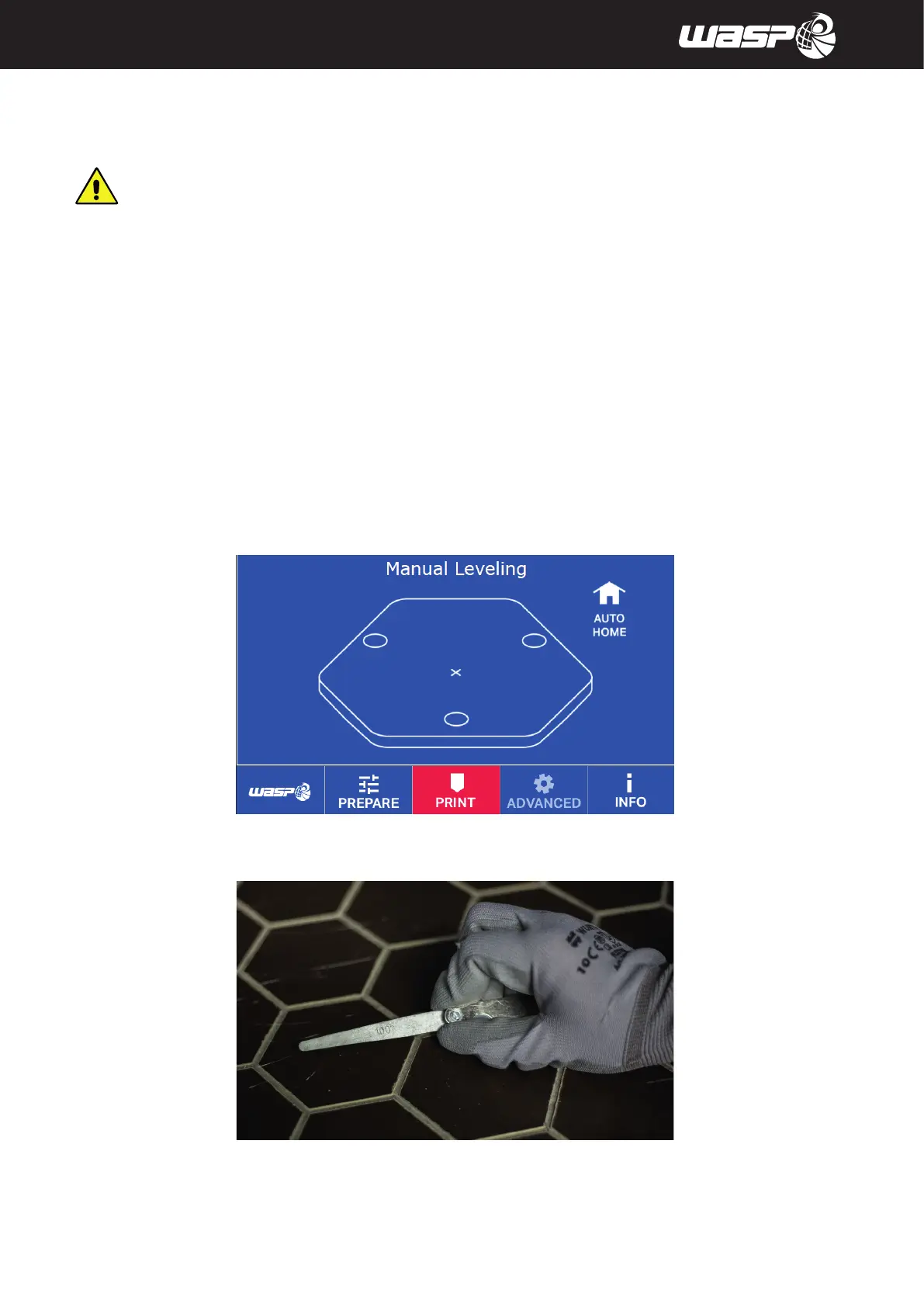 The manual leveling is a procedure that allows you to adjust the inclination of the buildplate in order to match the