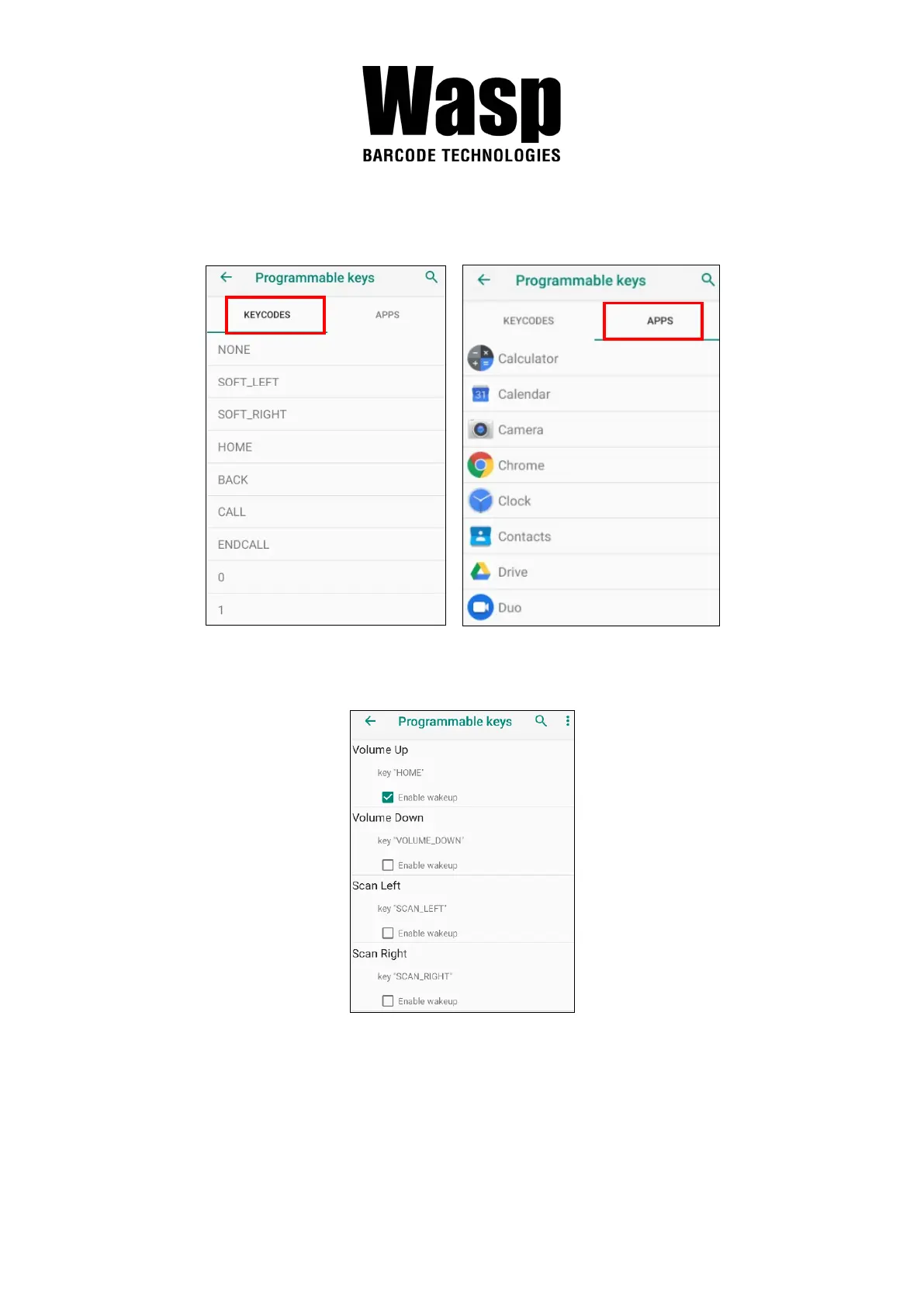 3. Tap one of KEYCODES or APPS that lists the available functions or