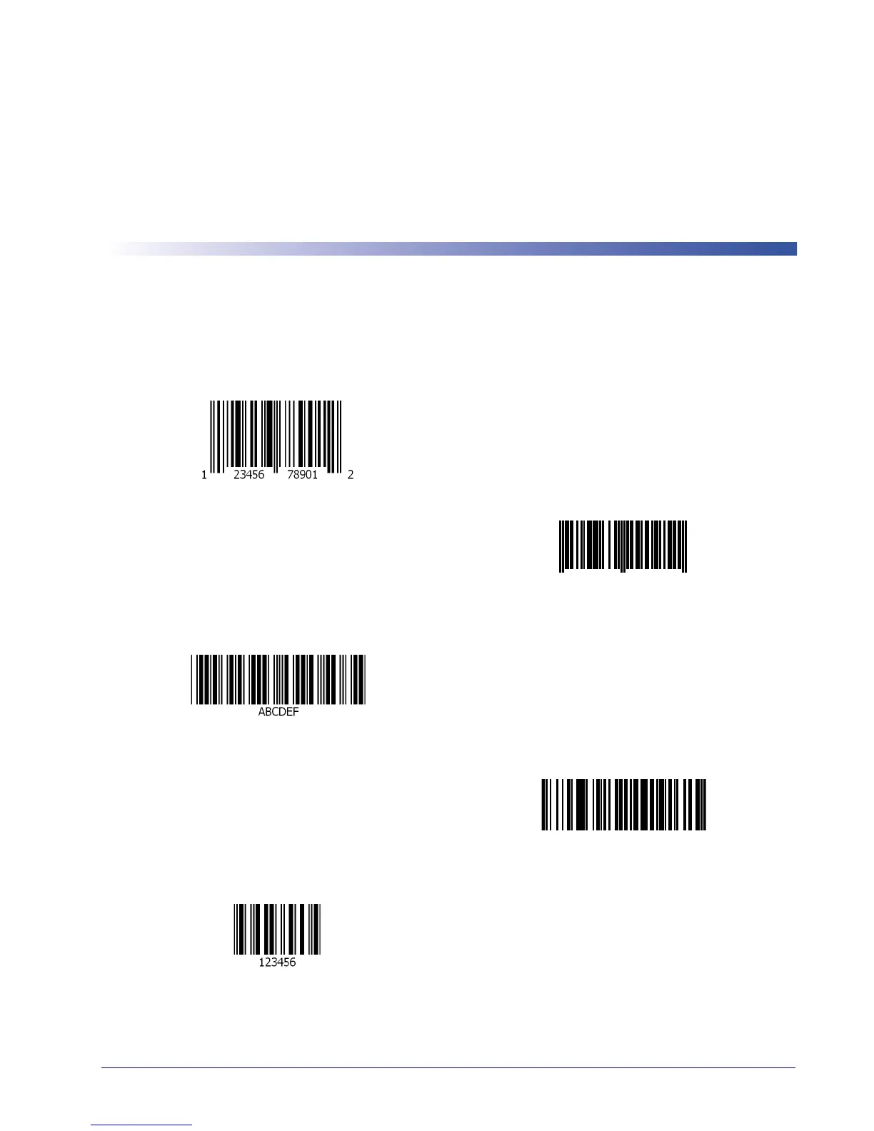 The sample barcodes in this appendix are typical representations for their symbology types.