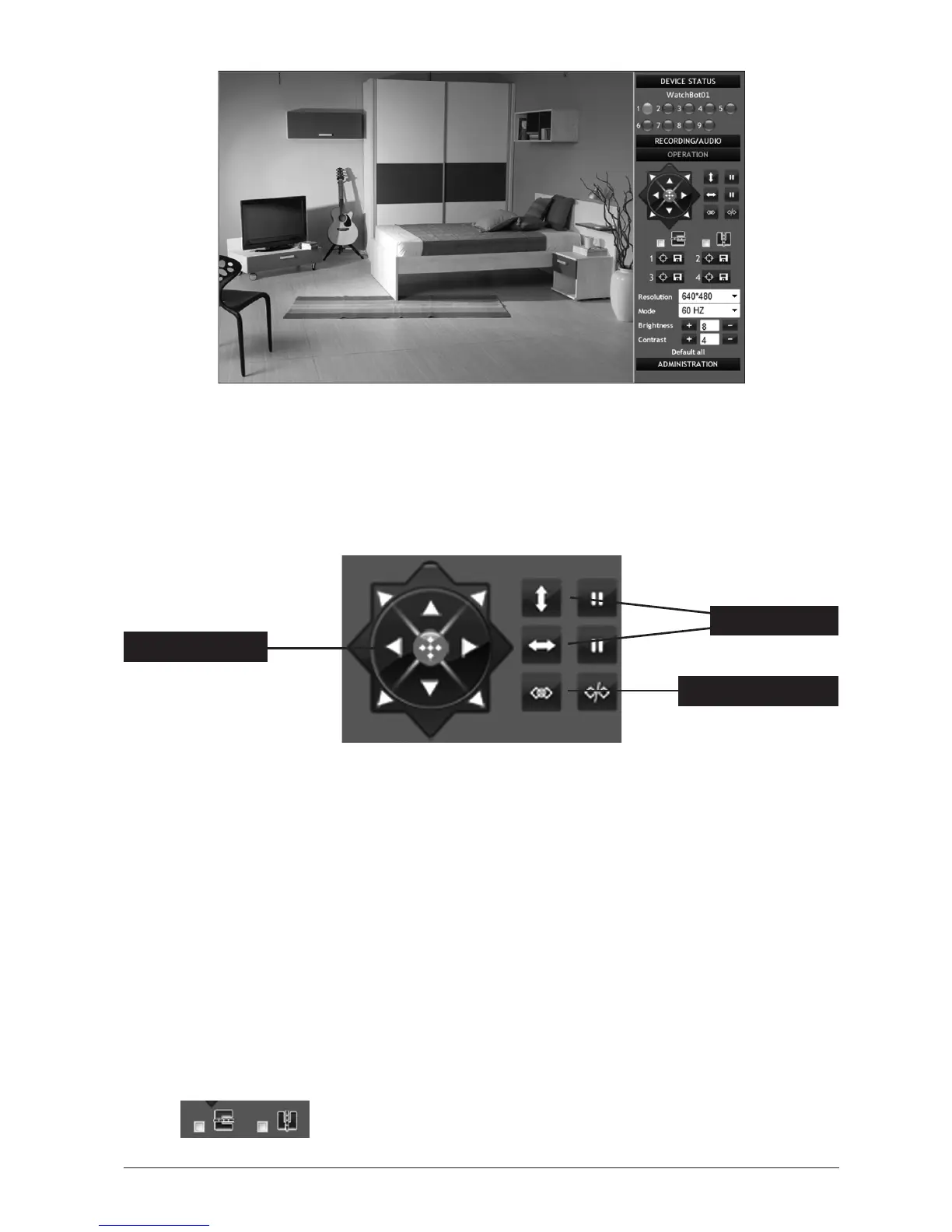 direcon. To centre the camera, click on the red centre icon. The device will then perform a