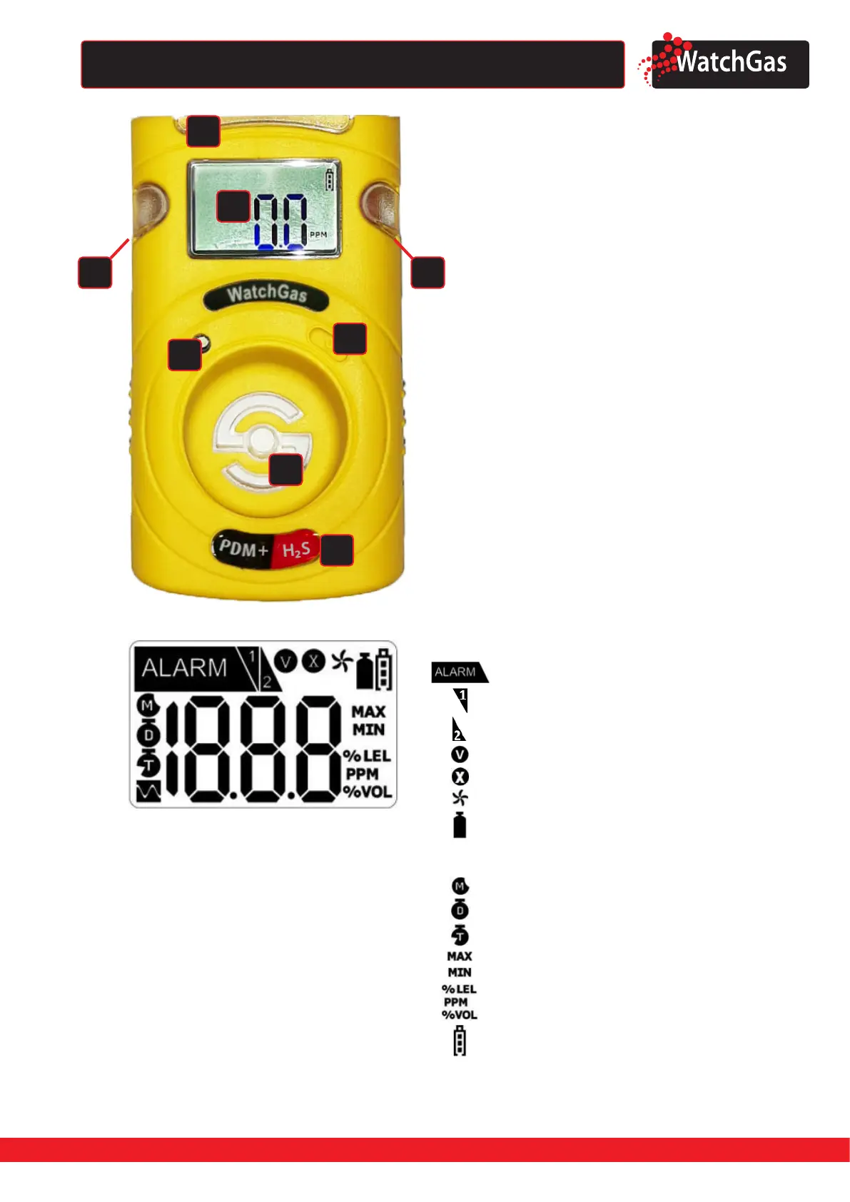 WatchGas PDM+ - Product Overview; Detector Components; Display Symbols