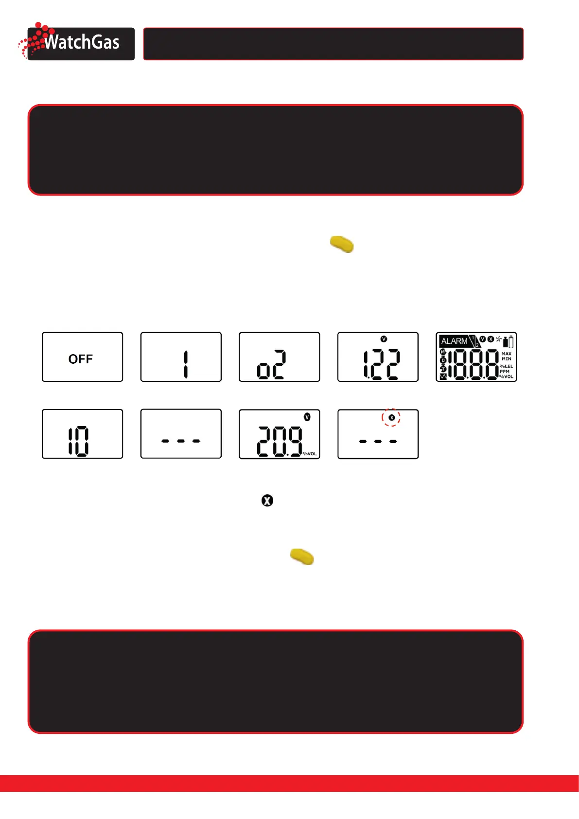 In a safe environment, when pressing and holding the botton ( ) for 3 seconds, gas type and