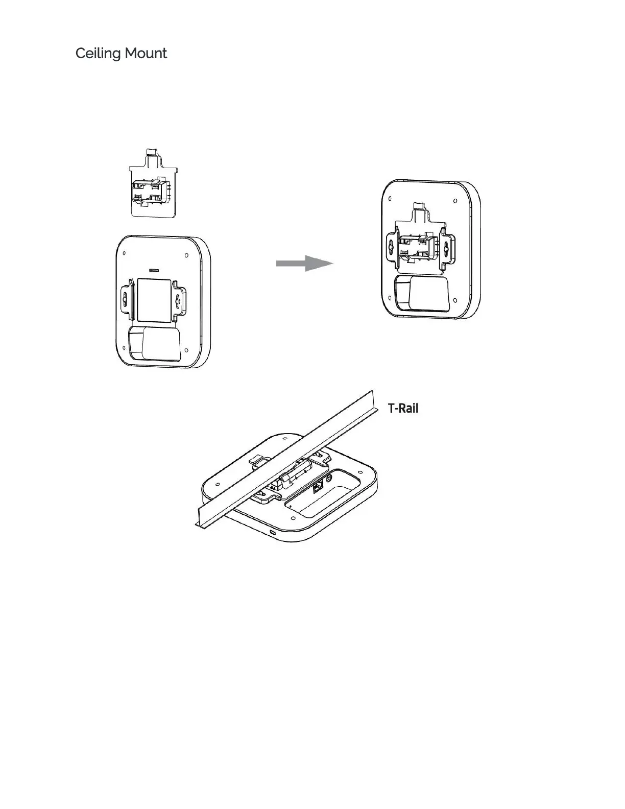 2. Hold the access point with one hand to reach the other hand over the t-rail sides of the bracket.