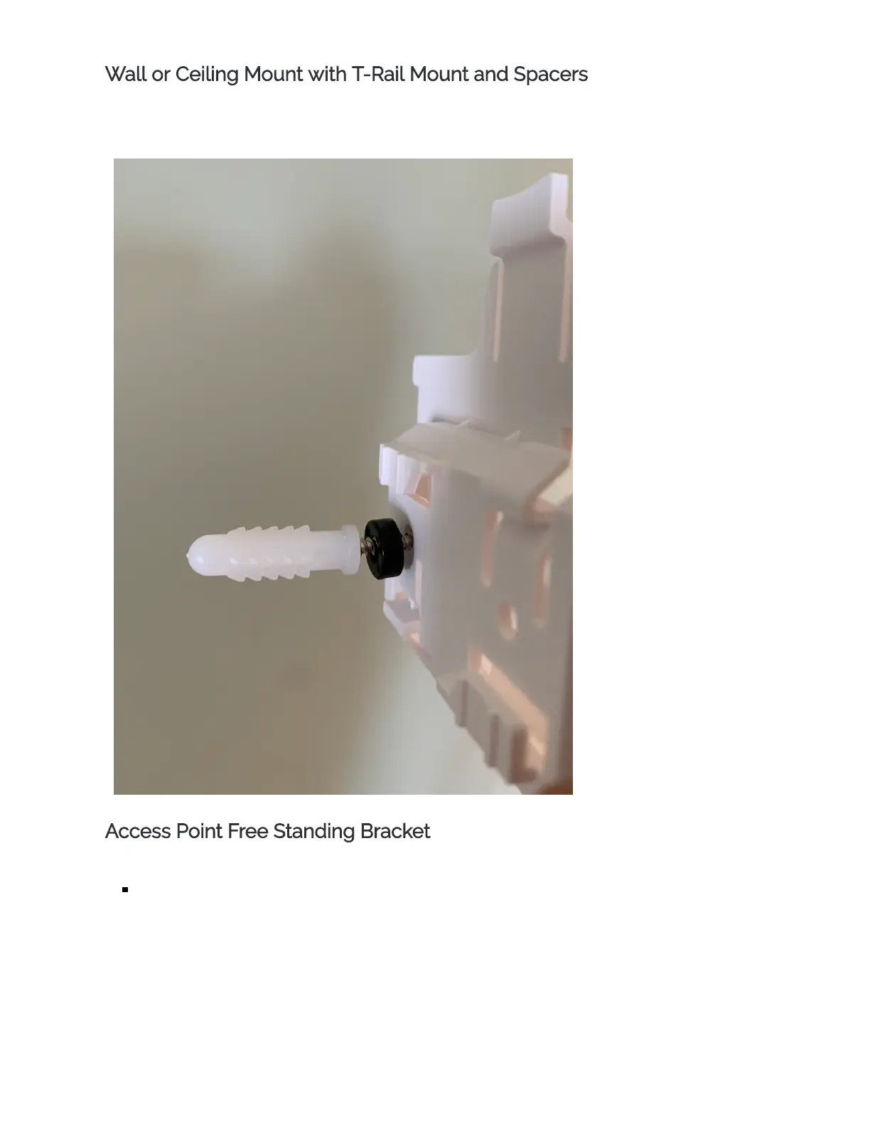 For ease of use, you can also affix the access point to a wall or ceiling with no t-rail system with the t-rail