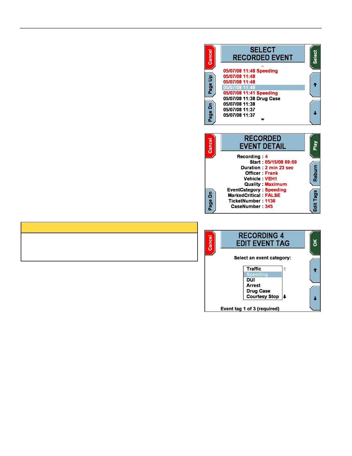 The RECORDED EVENT DETAIL screen is displayed, which shows