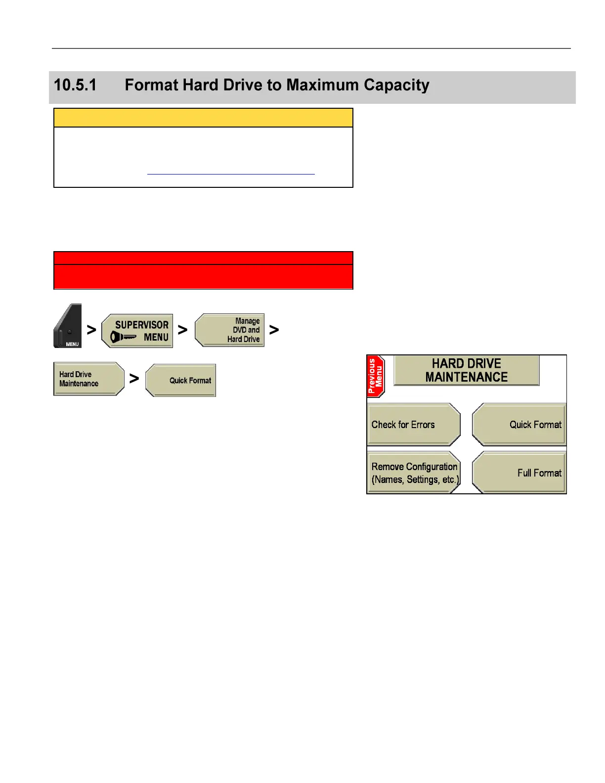 Supervisor access is required to format the hard drive from the