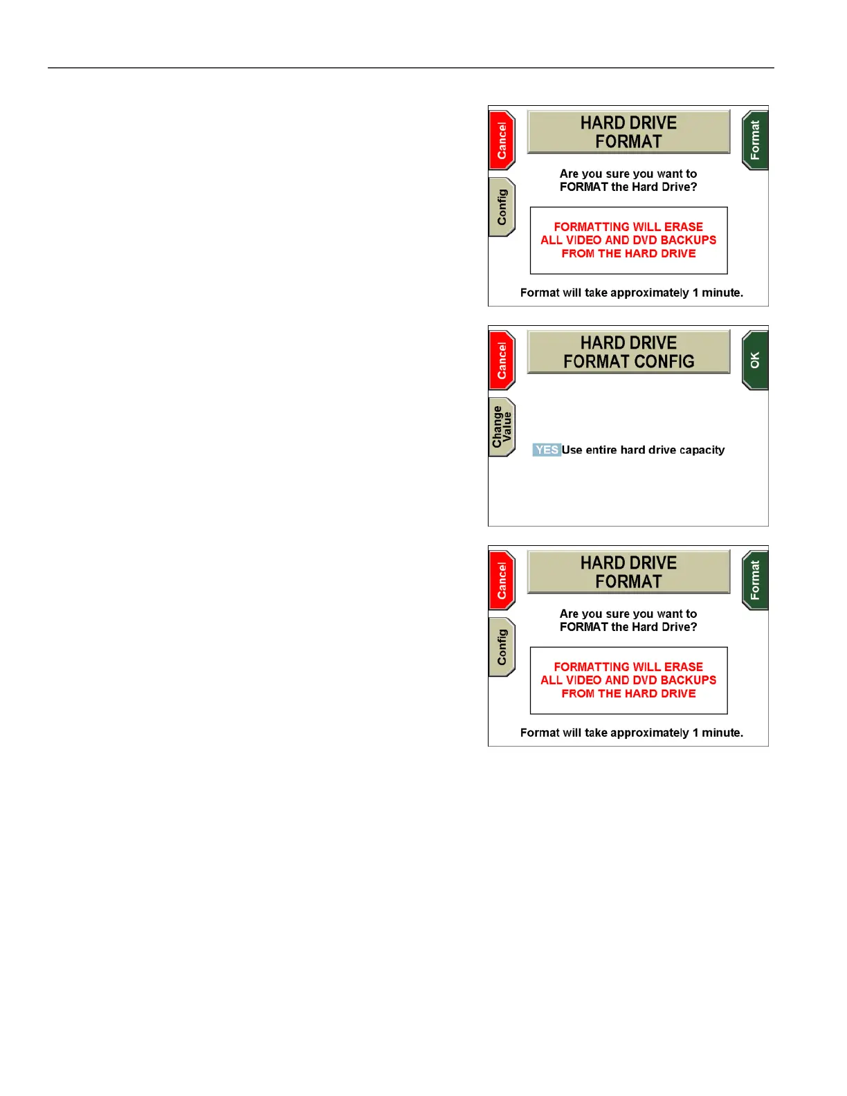 The HARD DRIVE FORMAT CONFIG screen is displayed.