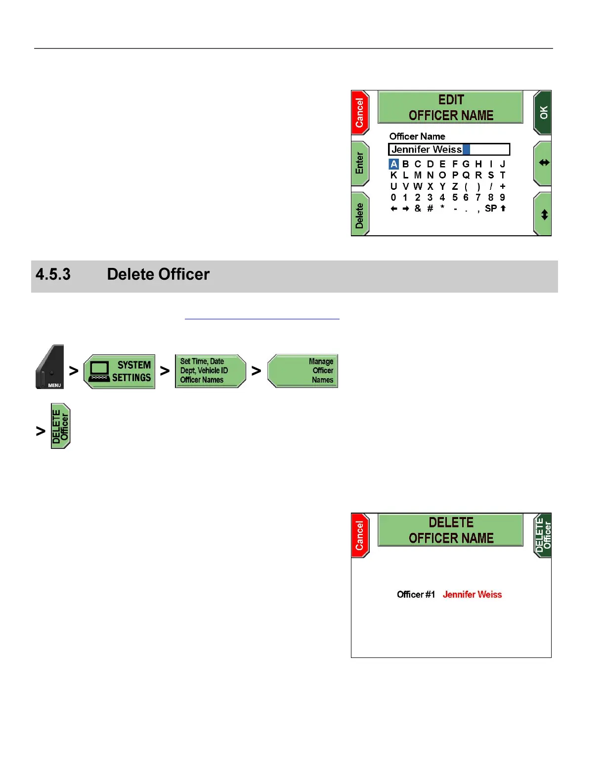 Press DELETE Officer to confirm the deletion and exit the screen,