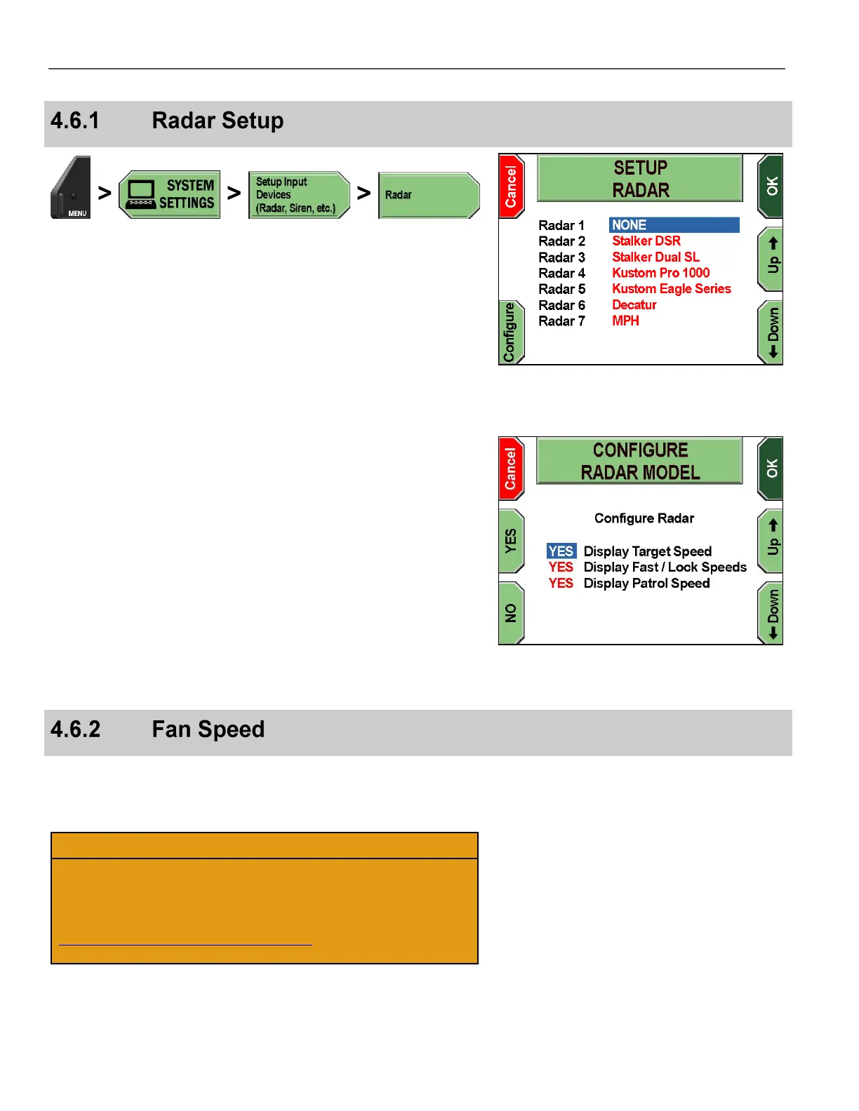 Press the Up & Down keys to select the radar system, and then
