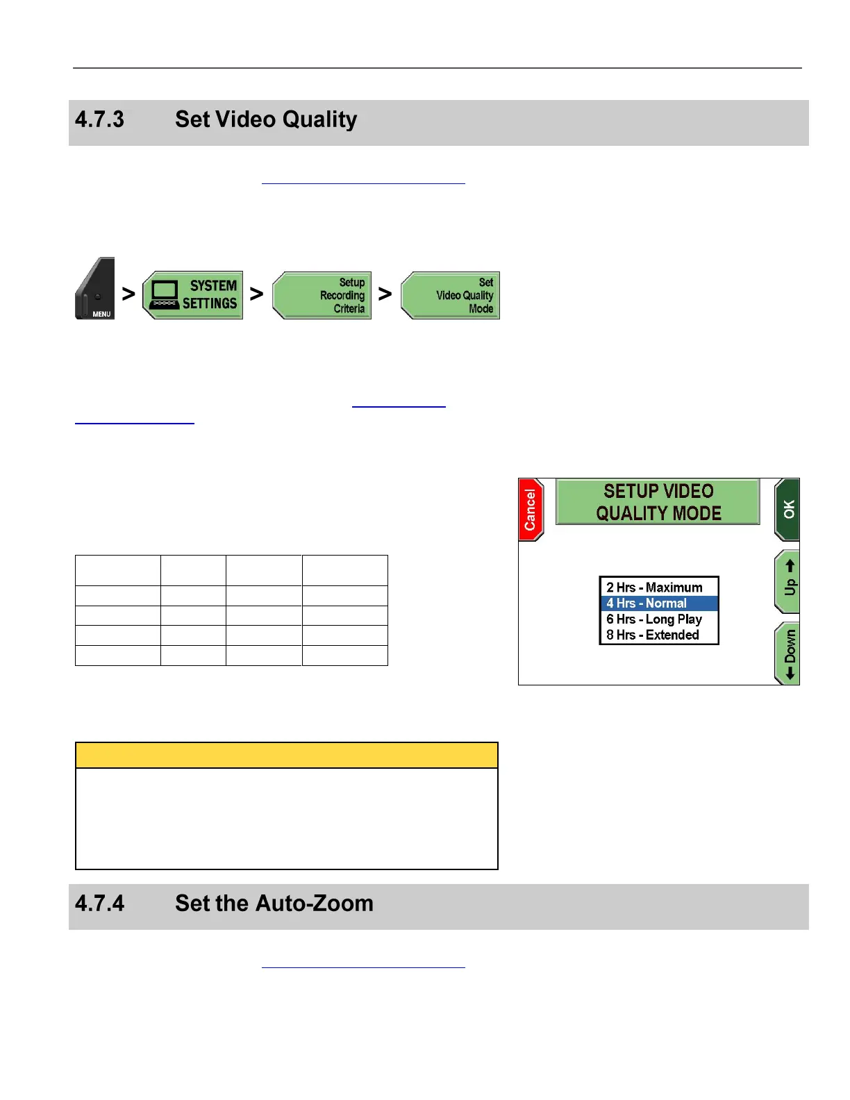 The SETUP VIDEO QUALITY MODE screen is displayed.