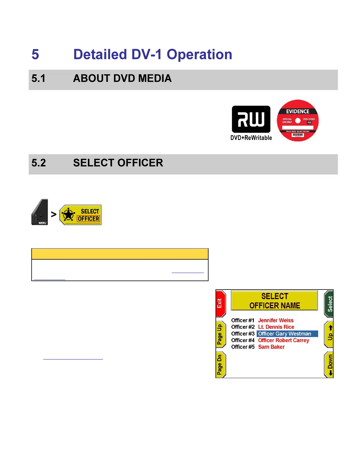 Press the Up & Down keys to choose the officer’s name. Press