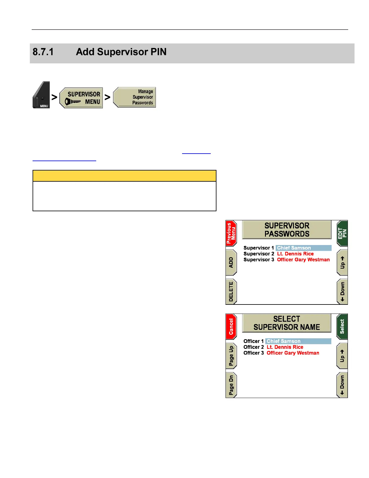 SUPERVISOR/ADMINISTRATOR FUNCTIONS MANAGE SUPERVISOR PASSWORDS