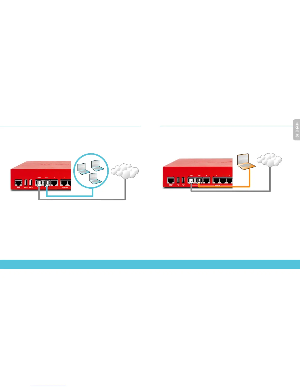 确保网络中的电脑被配置为使用 DHCP 方式自动获取 IP 地 址 。连 接 Firebox 设 备 后 ,它 将 在