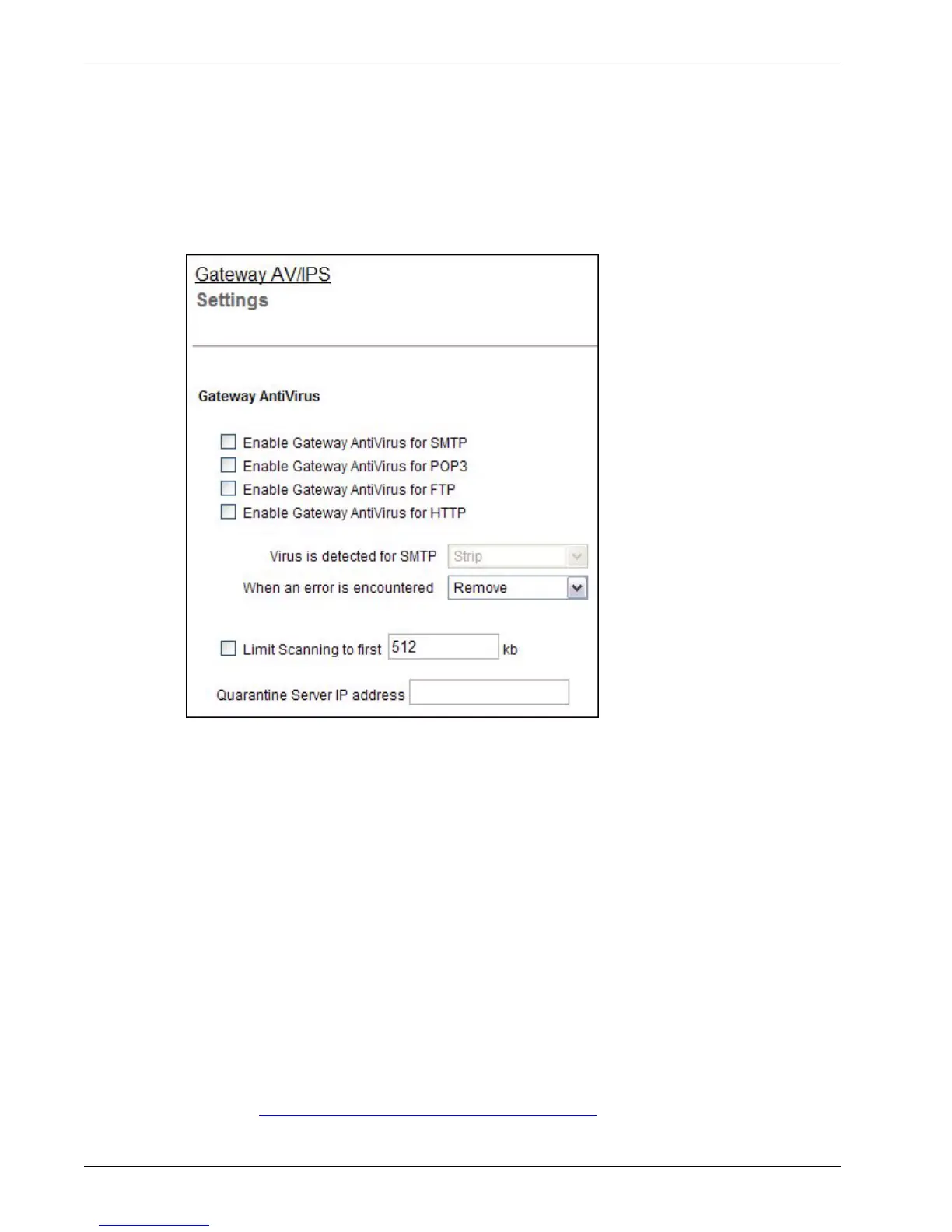 6. Select the Enable Gateway AntiVirus for HTTP check box to scan HTTP content for viruses.