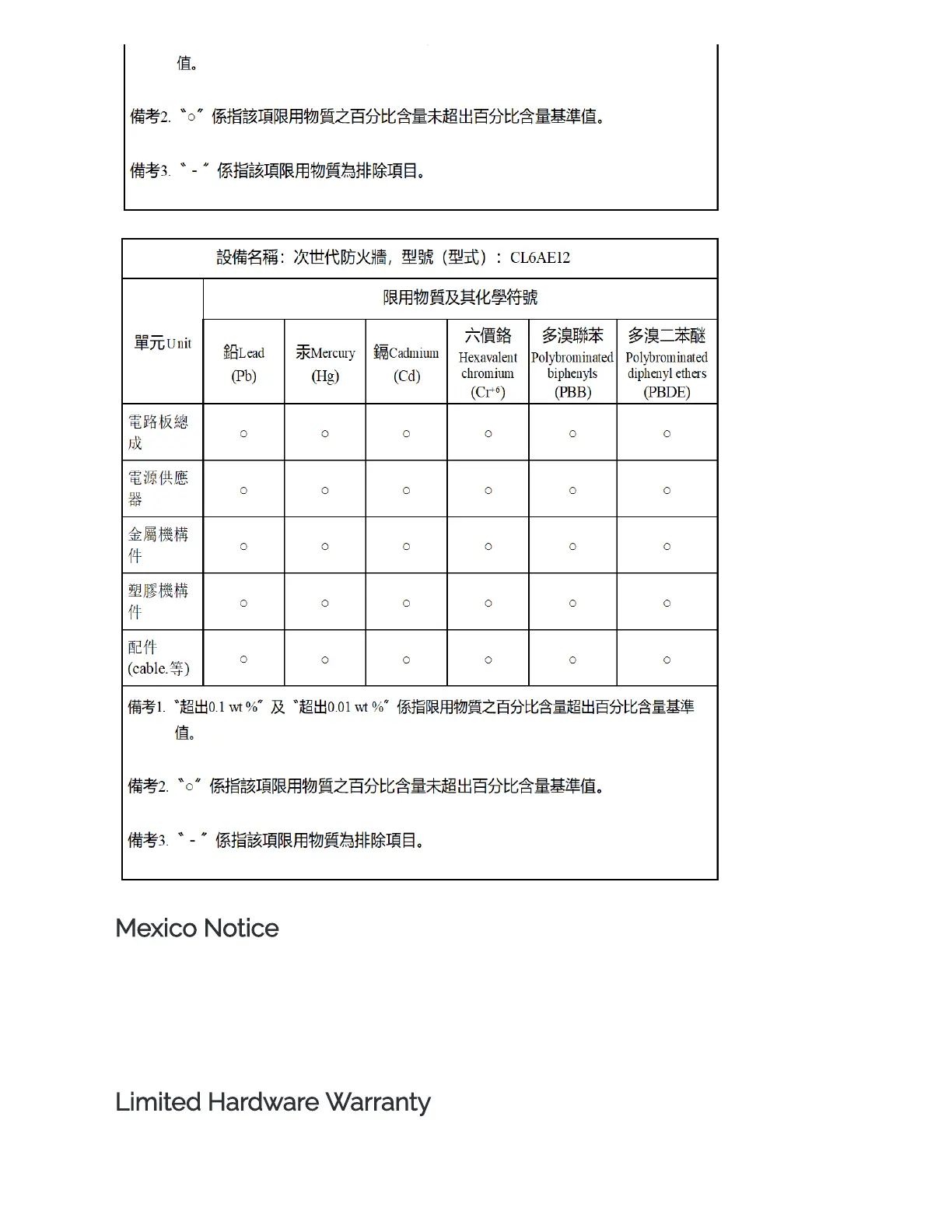 Watchguard M290 - Mexico Notice; Limited Hardware Warranty