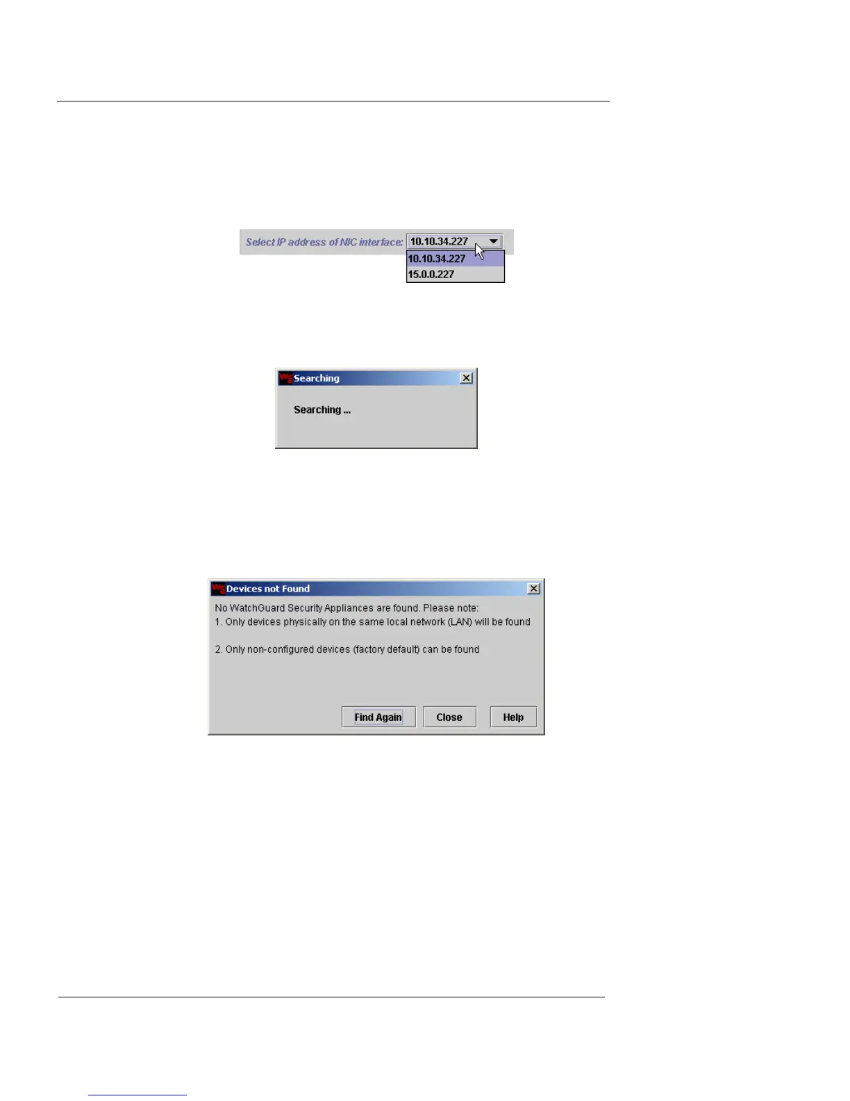 If no appliances are discovered, a Devices Not Found dia-
