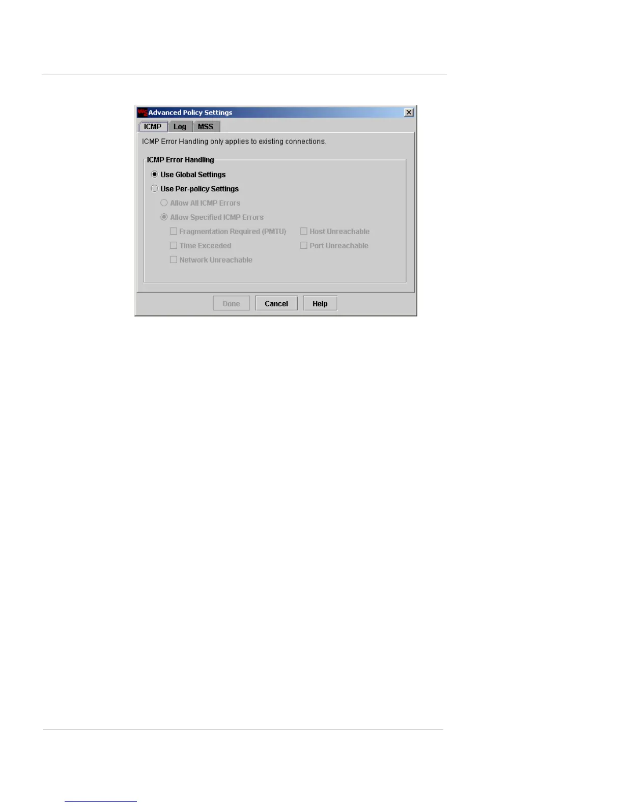 Selecting this option enables the ICMP error
