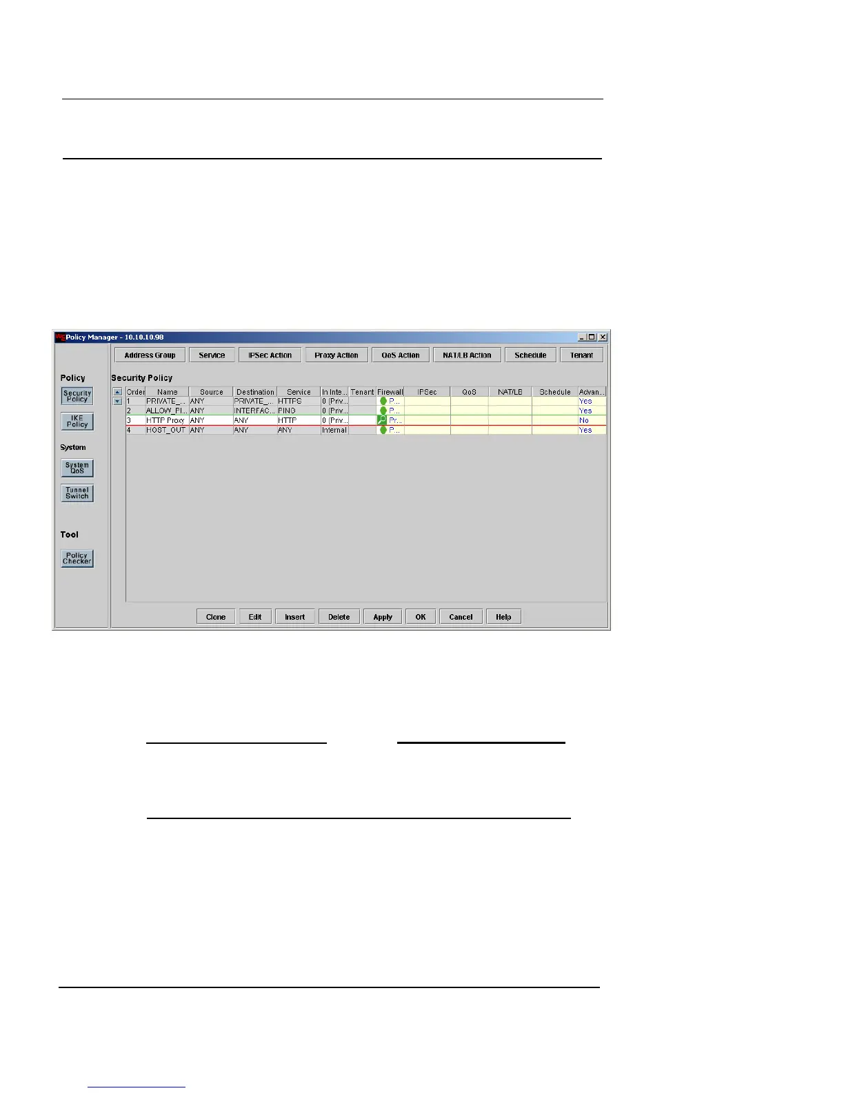 2 Click any existing policy entries (or click the last row)