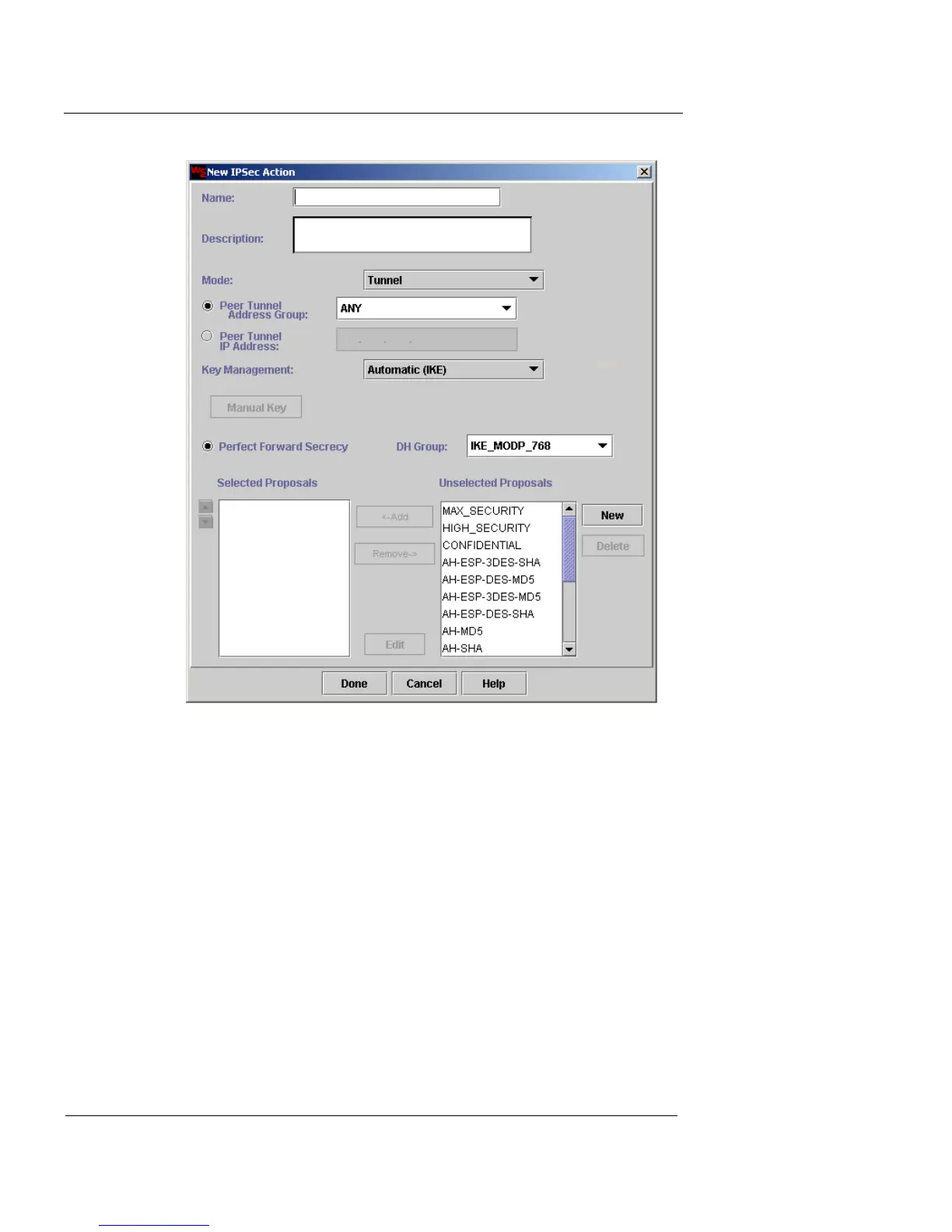 brief description for the IPSec action. The Description
