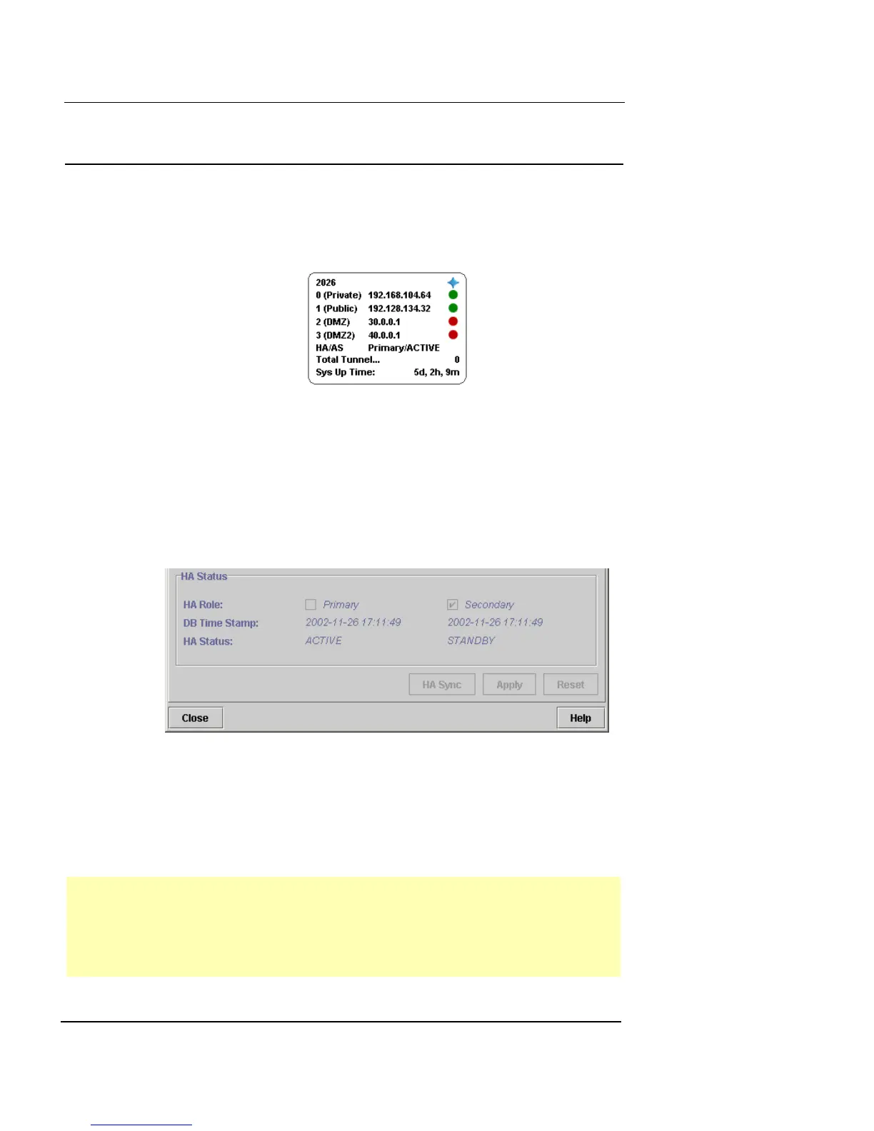 uration/High Availability dialog box. This status includes