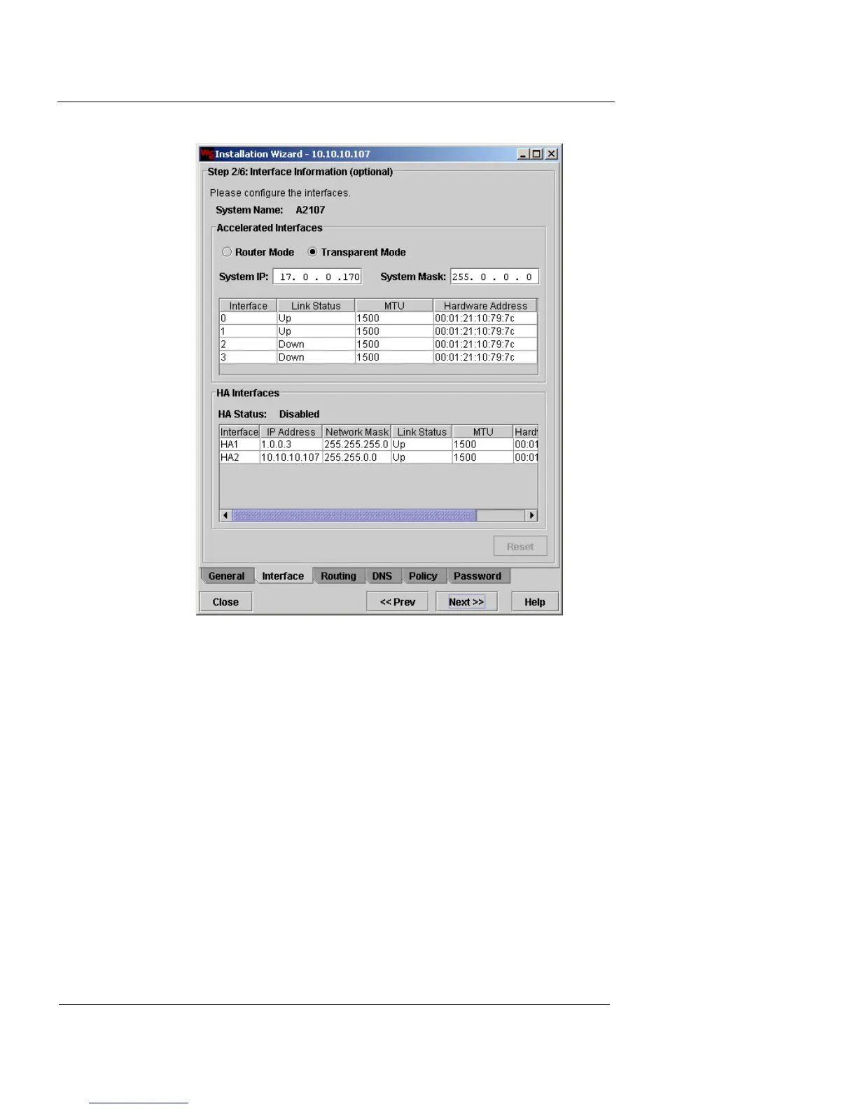 interface, double-click the interface entry in the table